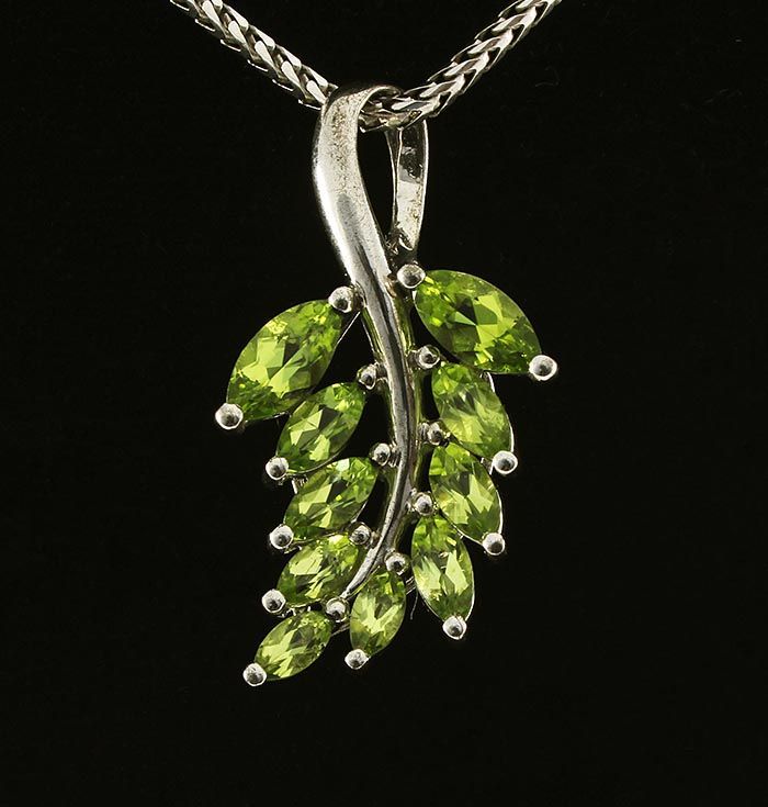 2.55CTW Natural Peridot Sterling Silver Pendant 3.27g **|**|** 1.24 Inches Long Cluster of Leaf Design Pendant with Marquise 8x4, 6x3 & 4x2mm Natural Peridot Gemstone ; MSRP: $0