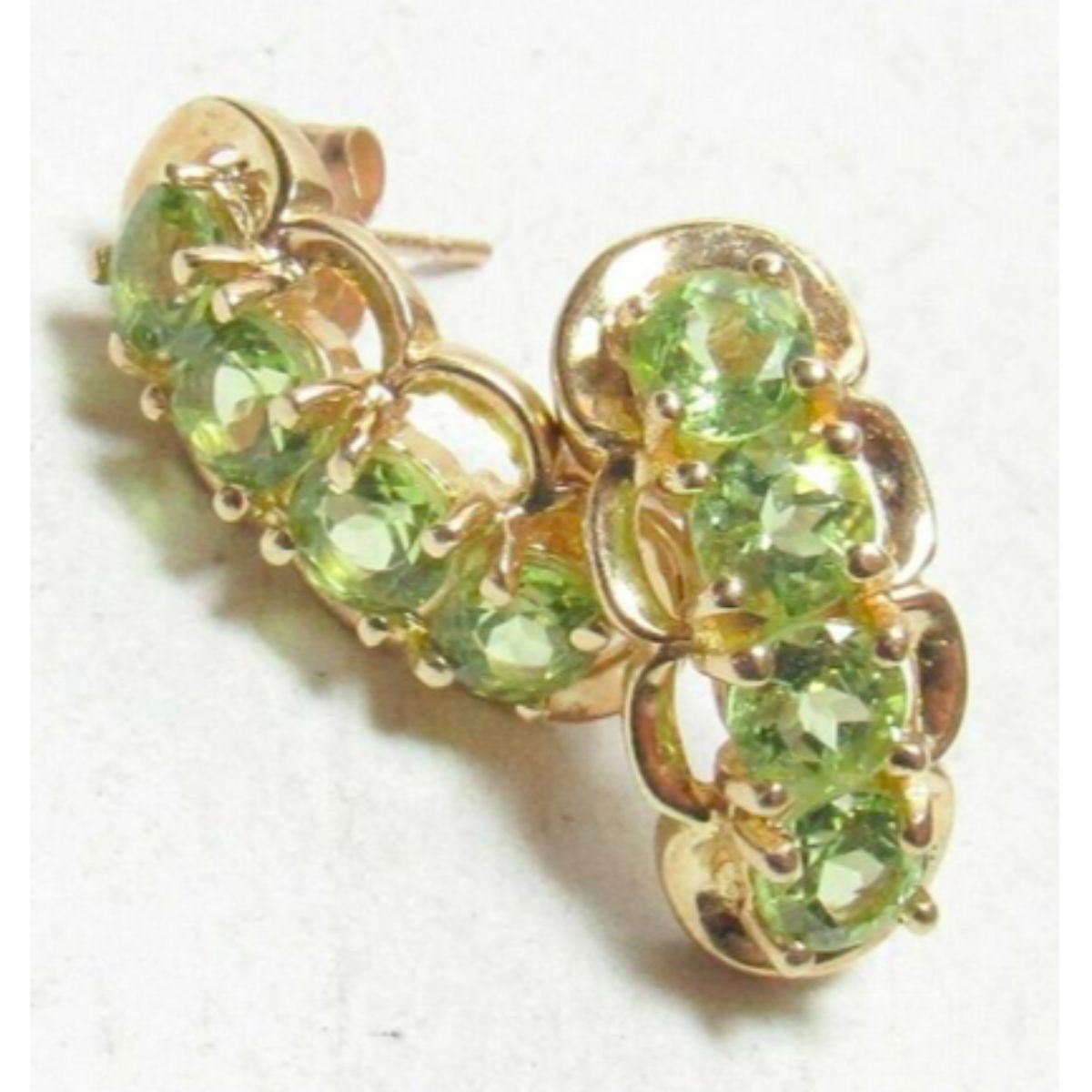 2.55cts Natural round green peridot gemstones ( 8 total ) set into 10kt yellow gold drop type earrings with butterfly fastenings. Â 3/8" X 3/4".