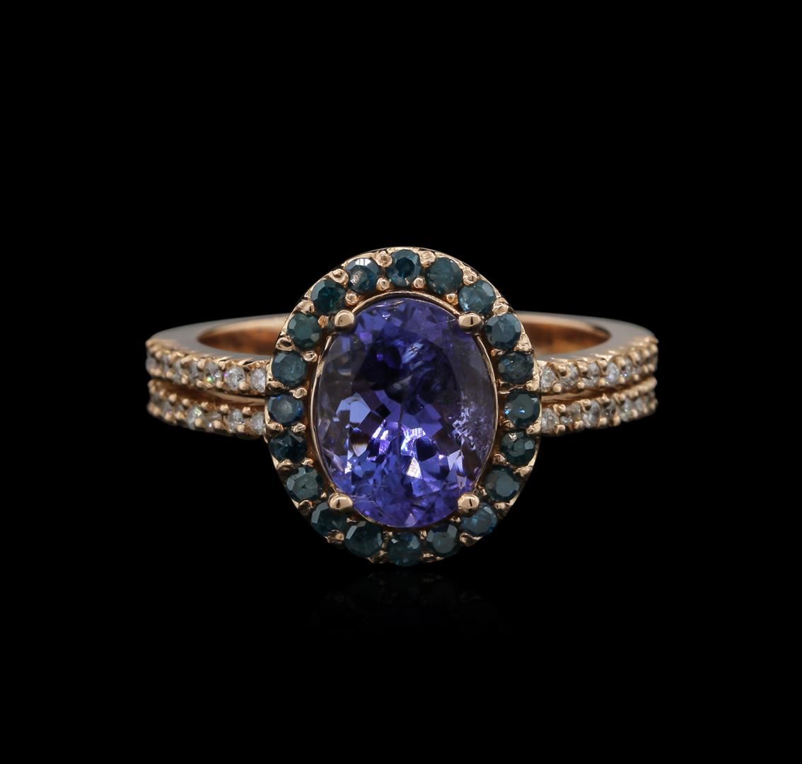 One ring featuring: 14KT rose gold weighing 4.75 grams containing one tanzanite center stone with a total weight of 2.56ct and 52 blue and white diamonds with a total weight of 0.48ct.