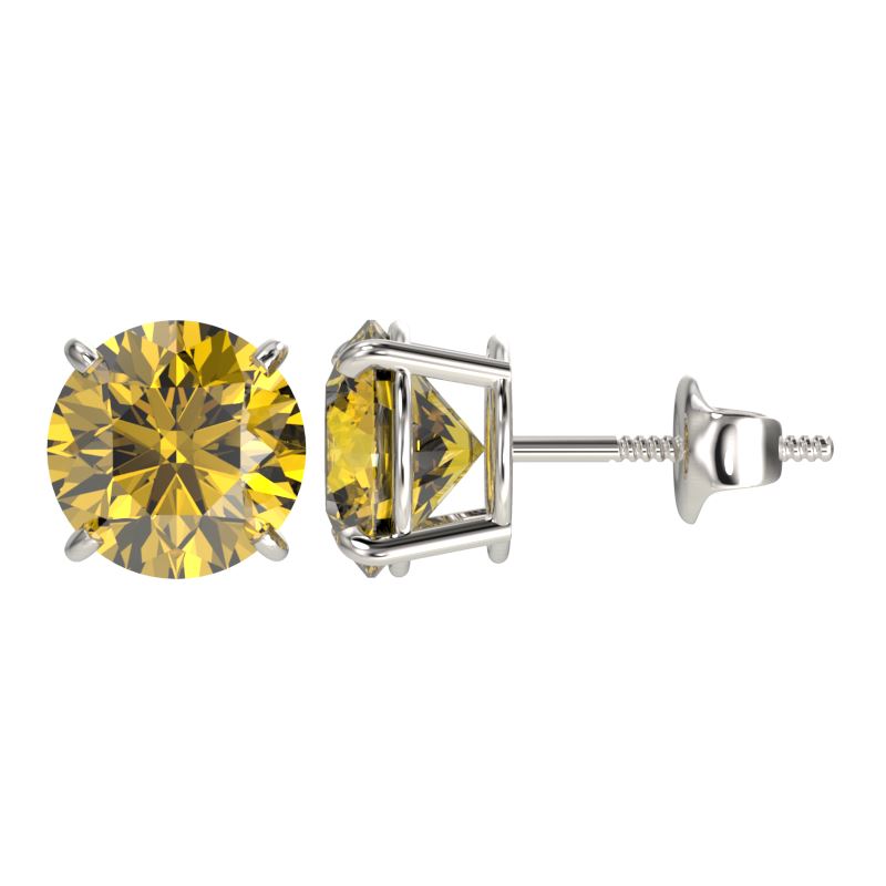 REF-427H5A -36688 ---- 2.57 CTW Certified Intense Yellow SI Diamond Solitaire Stud Earrings 10K White Gold ---- Luxury Designer Brand Earring Appraised at $31,350 Certificate Number US36688 10k White gold, Earring Size is Larger, Earring measuring approx. Uniform, weighing in total approx. 2.4 grams. Made in the USA and is stamped 10k, Main stone 2.57 carat total weight containing 2 pieces of Intense Fancy Yellow color with SI quality Round shape cut Diamond , Stone #2 carat total weight containing pieces of color with quality shape cut