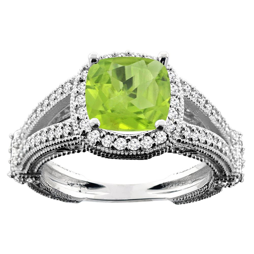 REF-44F5N - SKU: SC-CY911302 ---- 2.58 CTW Peridot & Diamond Ring 10K White Gold