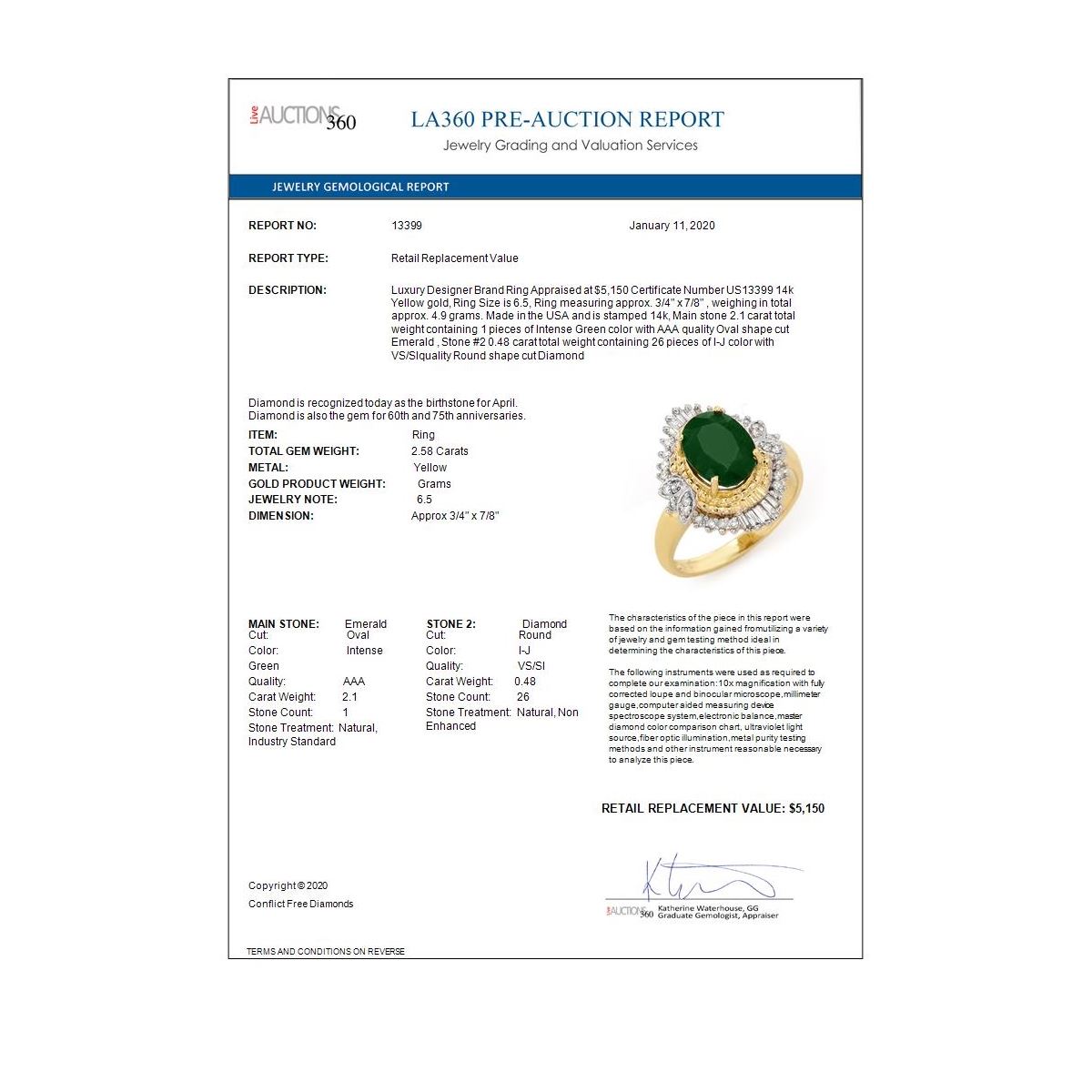 All lots are brand new unless stated in the description of the item. Made of solid gold in 10kt, 14kt and 18kt purity. Mostly set with Genuine Diamonds and/or Natural Gemstones. Most lots are in stock and ready to ship. Please see descriptions for more details or you can email us at: sales@3kingsauction.com for questions, please indicate lot number and auction date as your email subject.