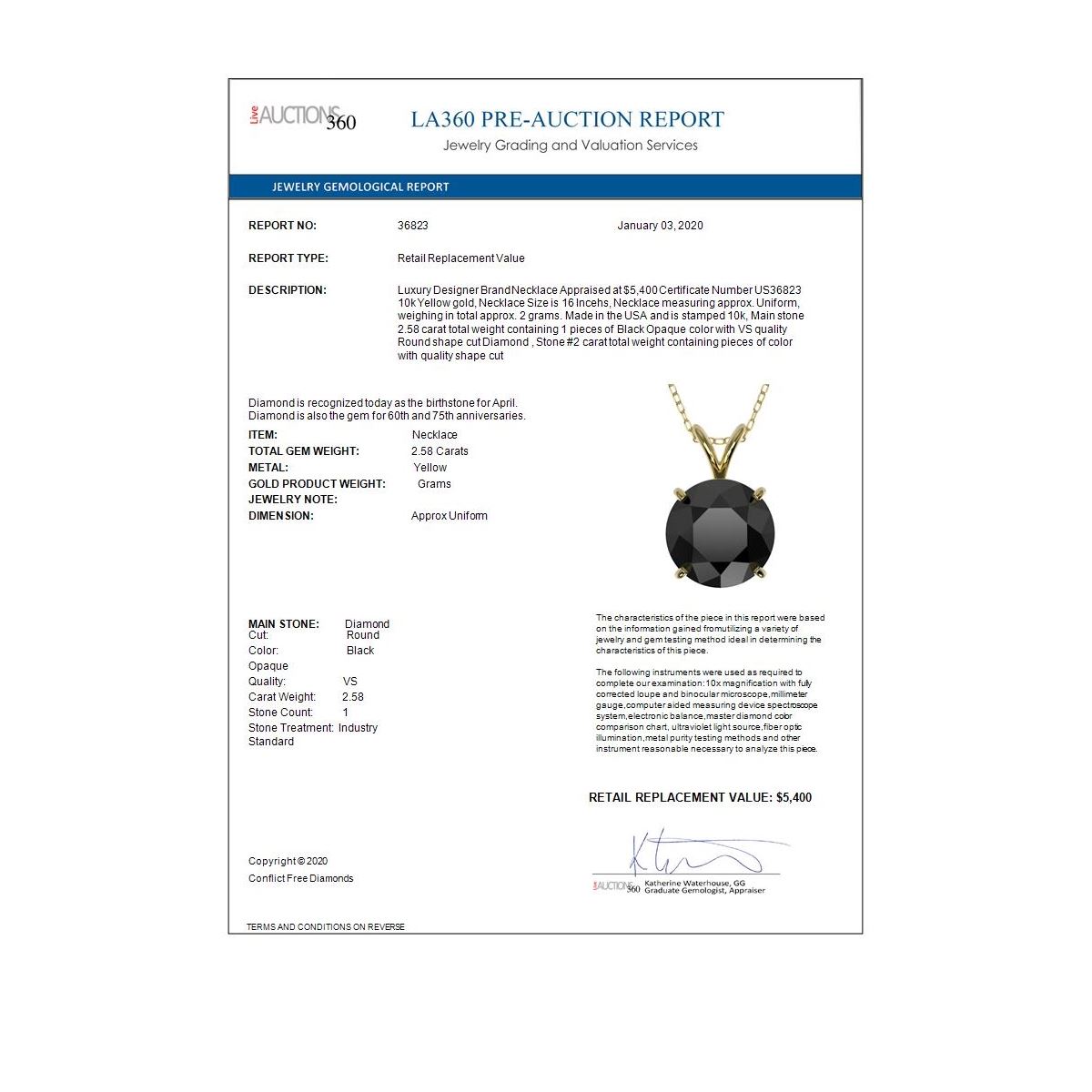 REF-60R3K - SKU: 36823 ---- 2.58 ctw Fancy Black Diamond Solitaire Necklace 10k Yellow Gold