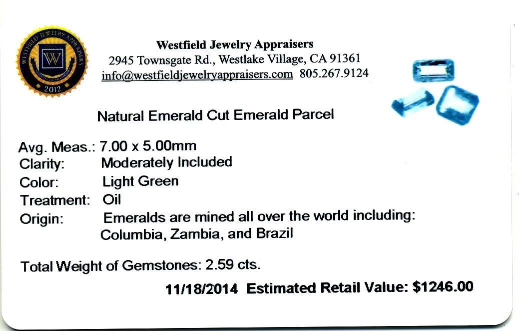 2.59cts. Natural Emerald Cut Emerald Parcel Westfield Appraised at $1,246.00.