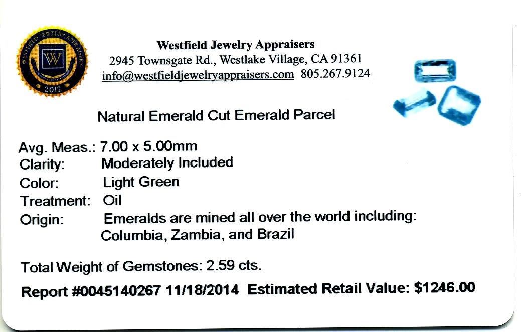 2.59cts. Natural Emerald Cut Emerald Parcel Westfield Appraised at $1,246.00.