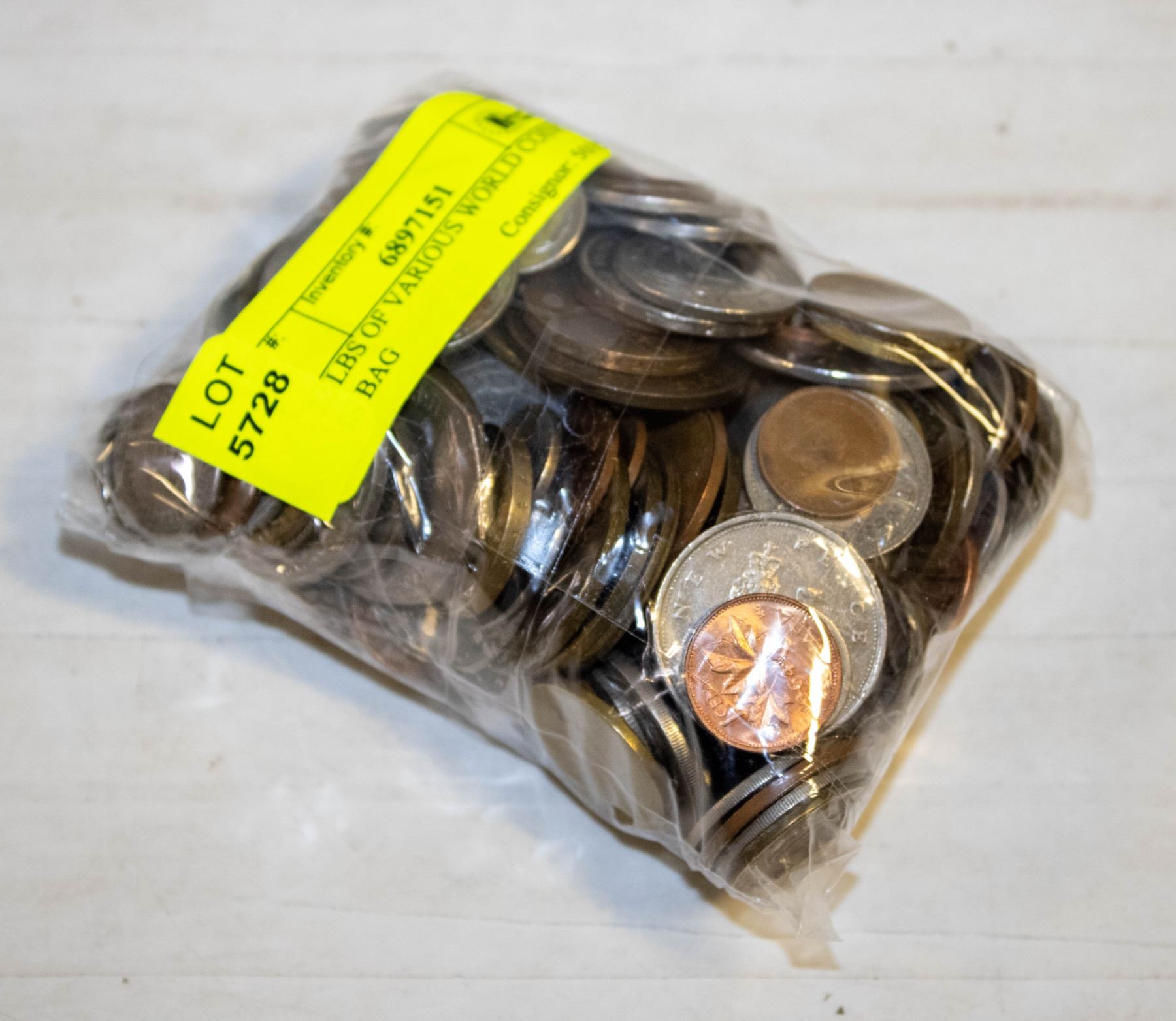 2.5LBS OF VARIOUS WORLD COINS IN BAG