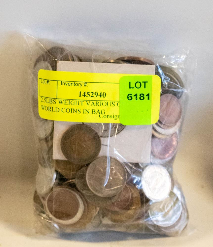 2.5LBS WEIGHT VARIOUS OLD WORLD COINS IN BAG