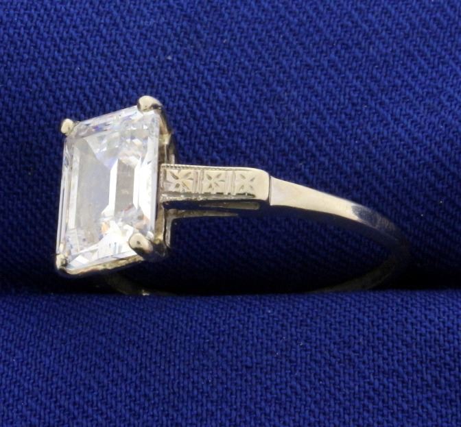 In 14k white gold. Contains a natural 9x7mm CZ gemstone with a brilliant white color and excellent clarity. Size 7. 2.7g.