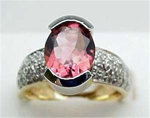 2.5ct Pink Tourmaline ring, .40ctw of diamonds 8.0gr 14kt two tone finger size 7 1/4