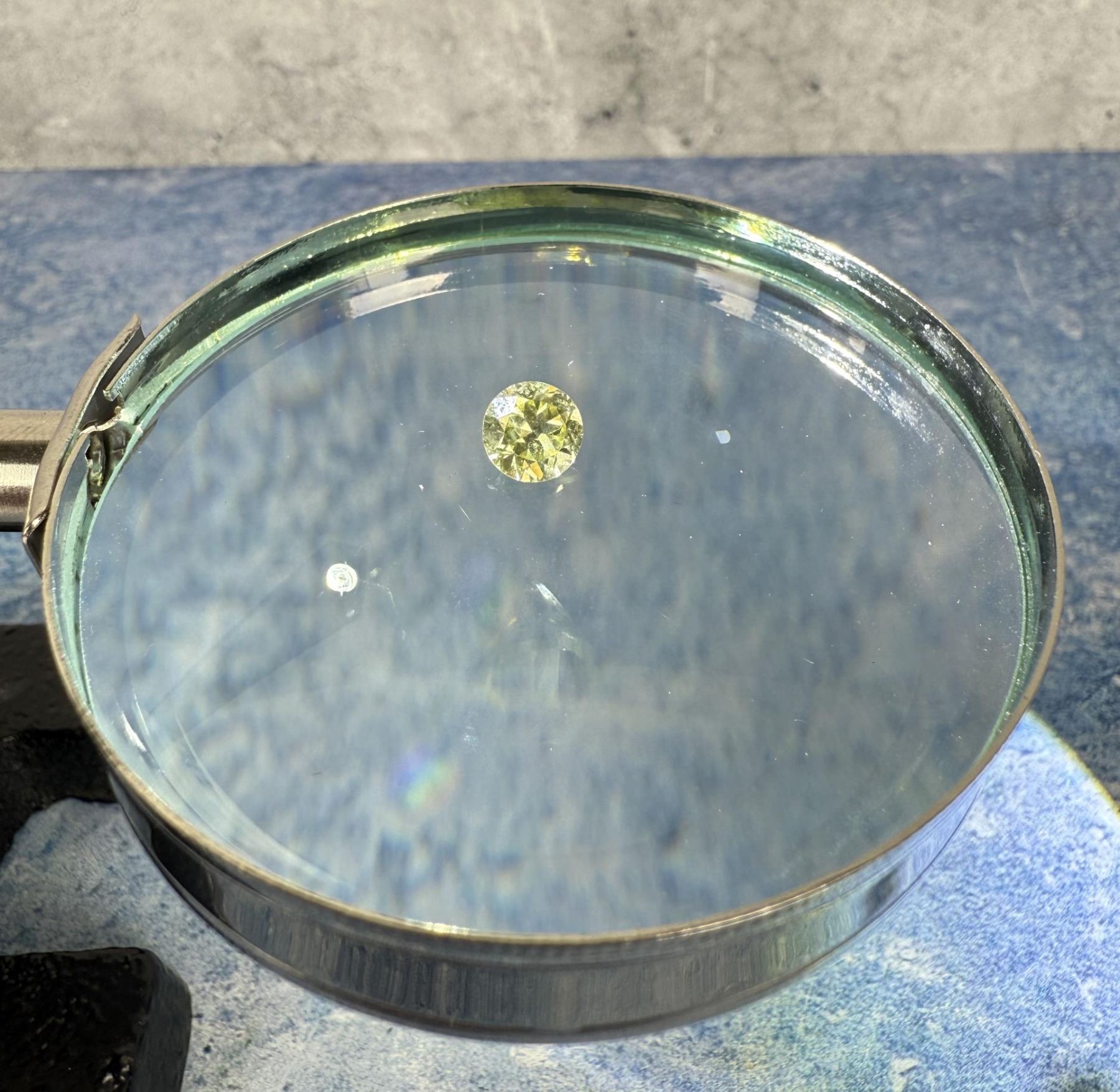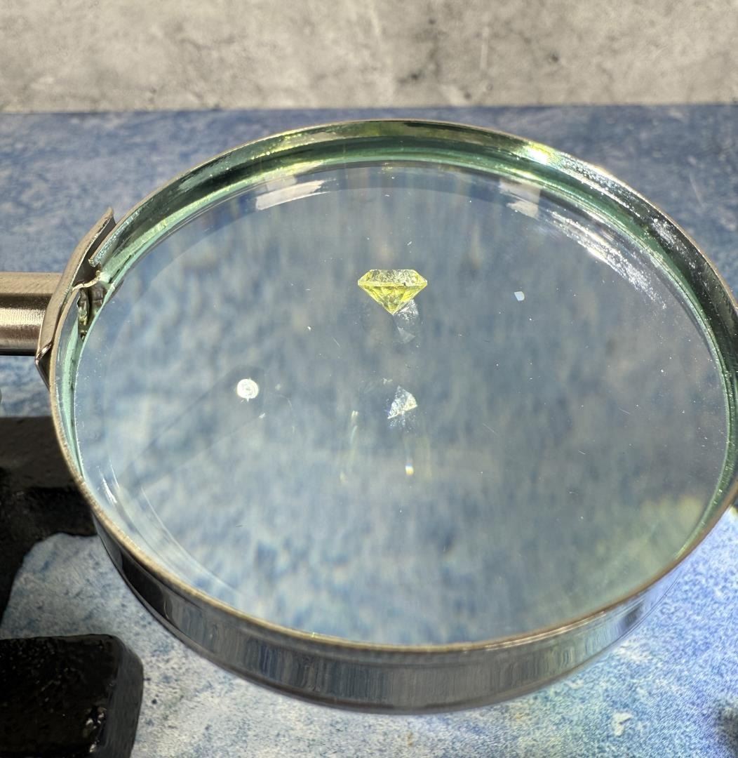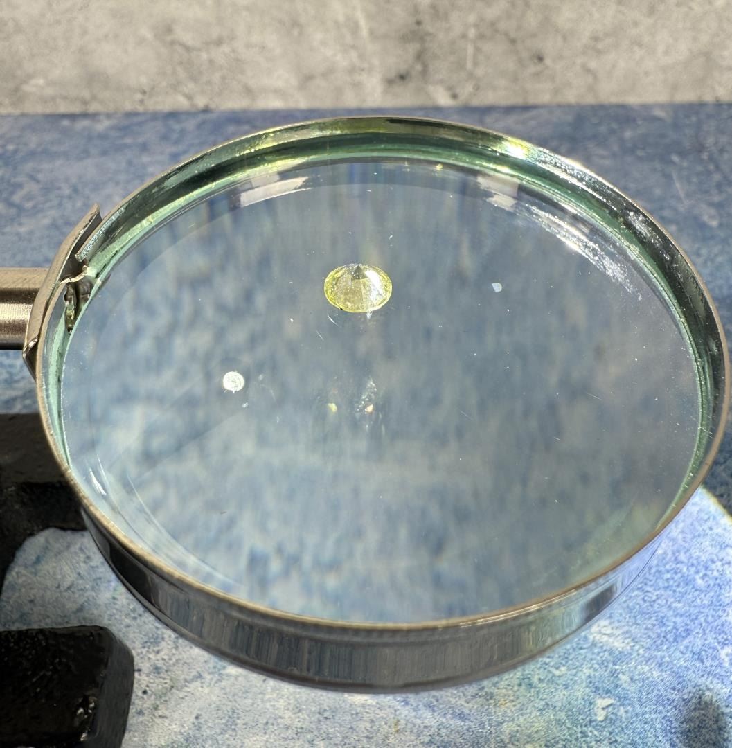 Round. Unheated. Yellow/Green. Nice stone.