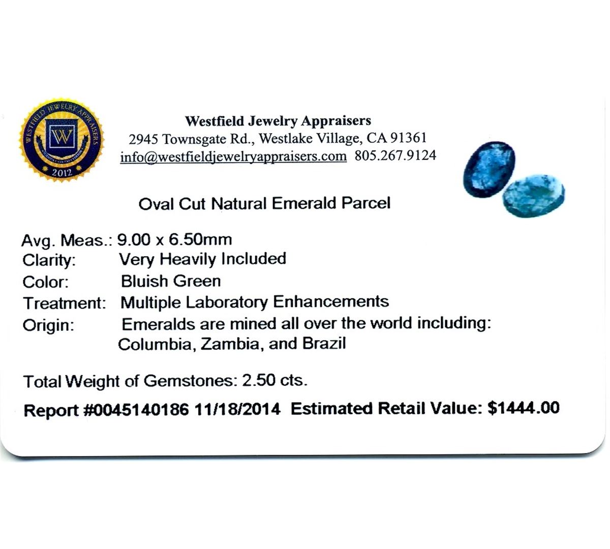 2.5cts. Oval Cut Natural Emerald Parcel Westfield Appraised at $1,444.00.