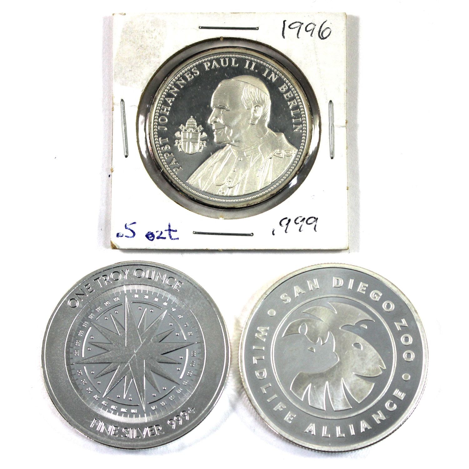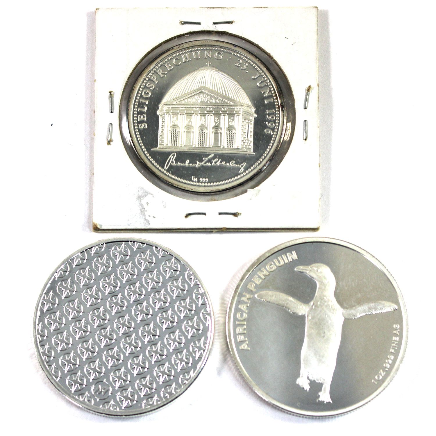 INCLUDES: 1oz San Diego Wildlife Alliance African Penguin, 1oz Compass Rose & 0.5oz 1996 Pope Johannes Paul II Fine Silver Rounds. 3pcs