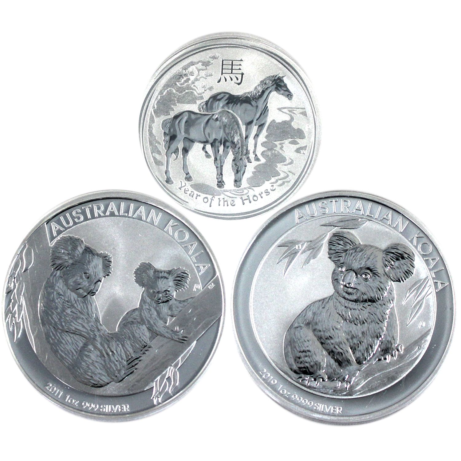 Includes: 2014 50-cent Year of the Horse, 2011 & 2019 $1 Australian Koala. W/ Capsules. 3pcs.