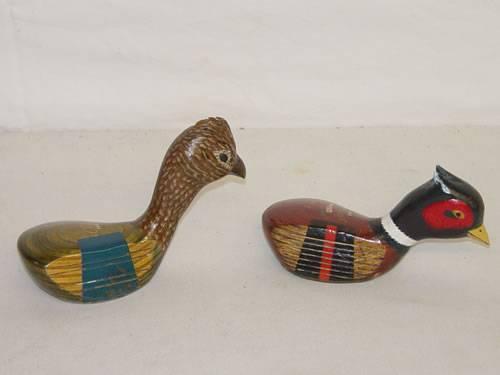 (2) 6" GOLF CLUB HEAD CARVINGS SIGNED B.C. (BILL CONROY): RING NECK PHEASANT & RUFFLED GROUSE