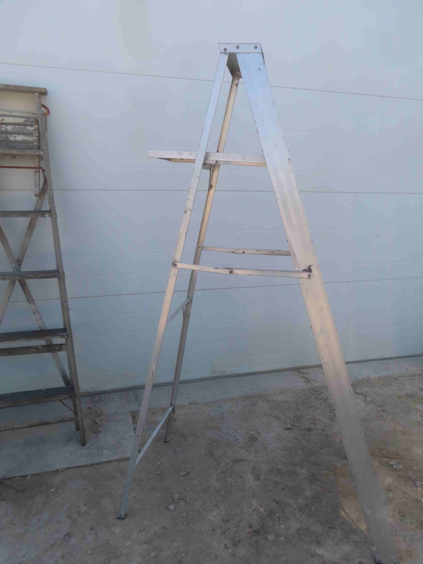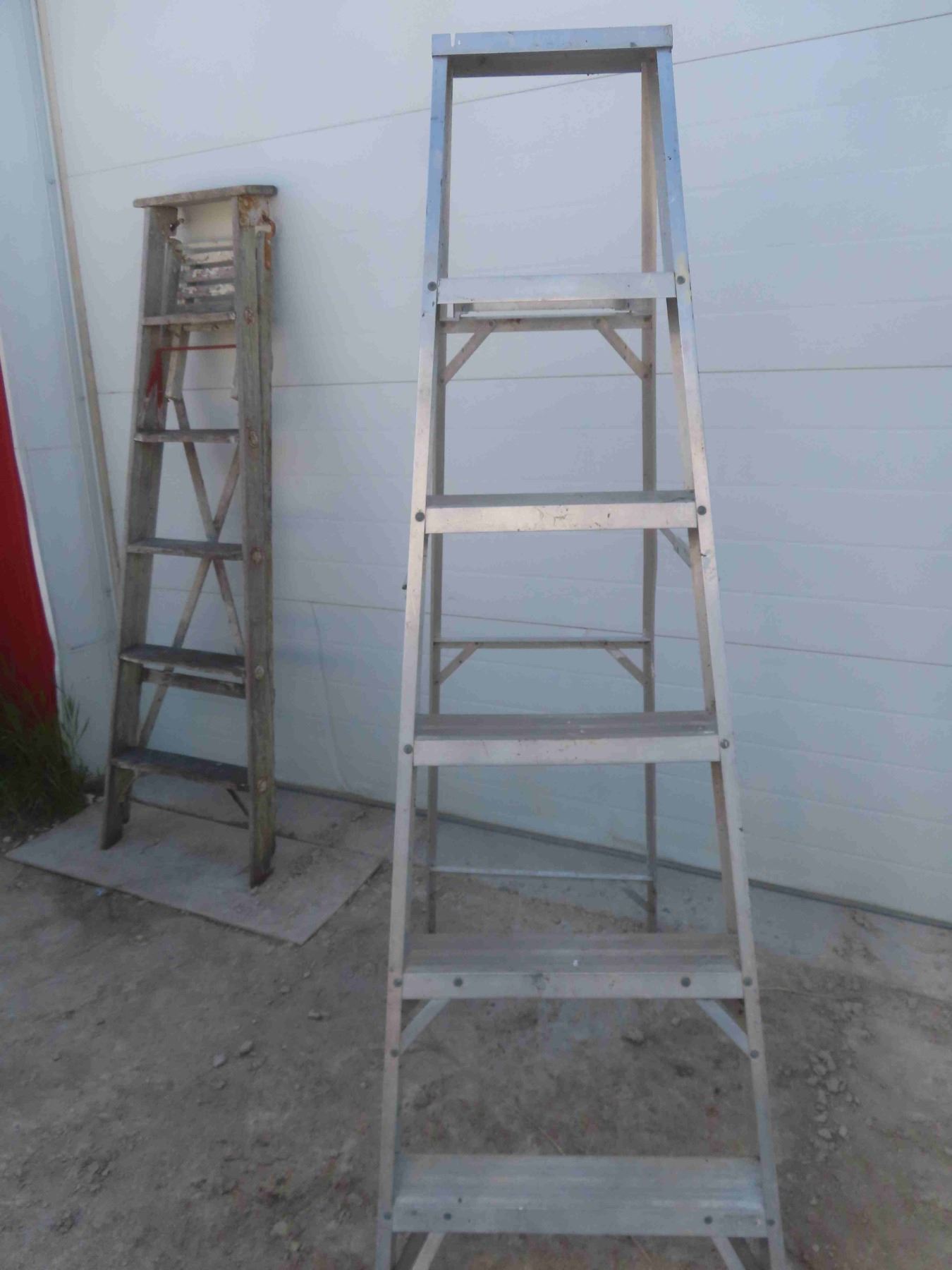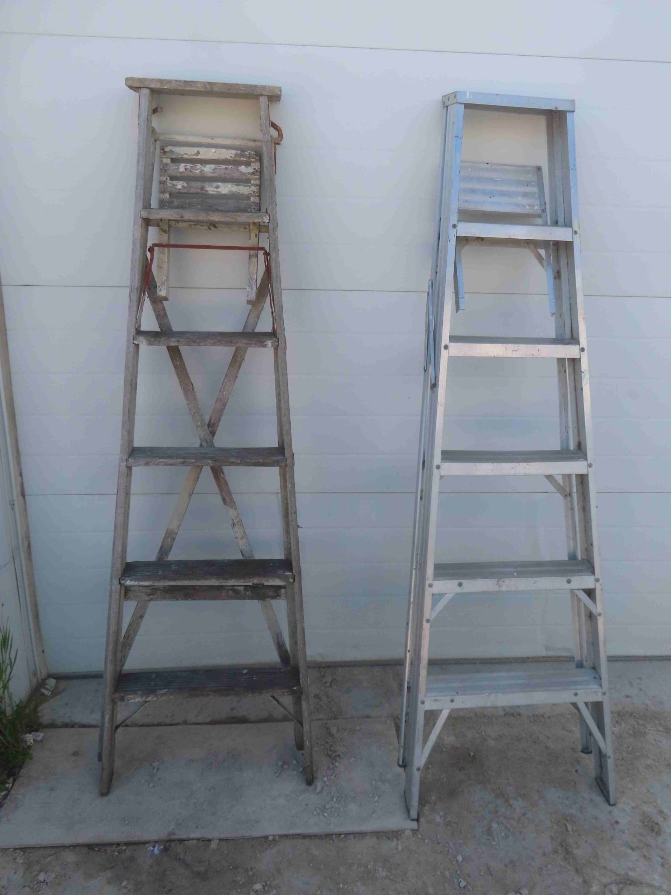 (2) 6' Step Ladders with Paint Trays - 1 Wood , 1 Aluminum