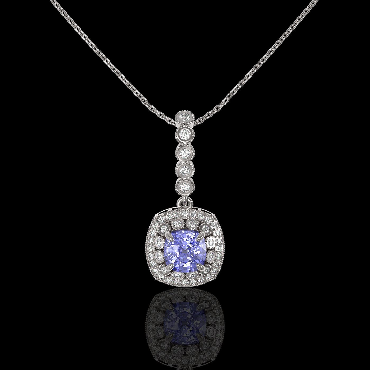 REF-100A2N - SKU: 44081 ---- 2.6 ctw Tanzanite & Diamond Victorian Necklace 14K White Gold