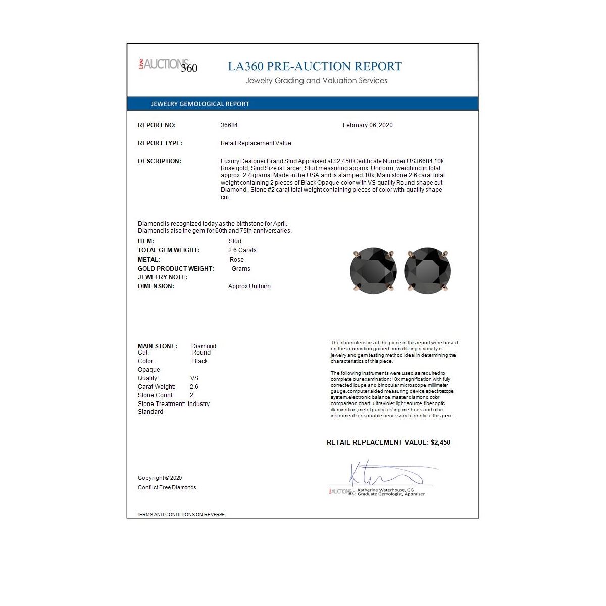 REF-43X2A - SKU: 36684 ---- 2.60 ctw Fancy Black Diamond Solitaire Stud Earrings 10k Rose Gold
