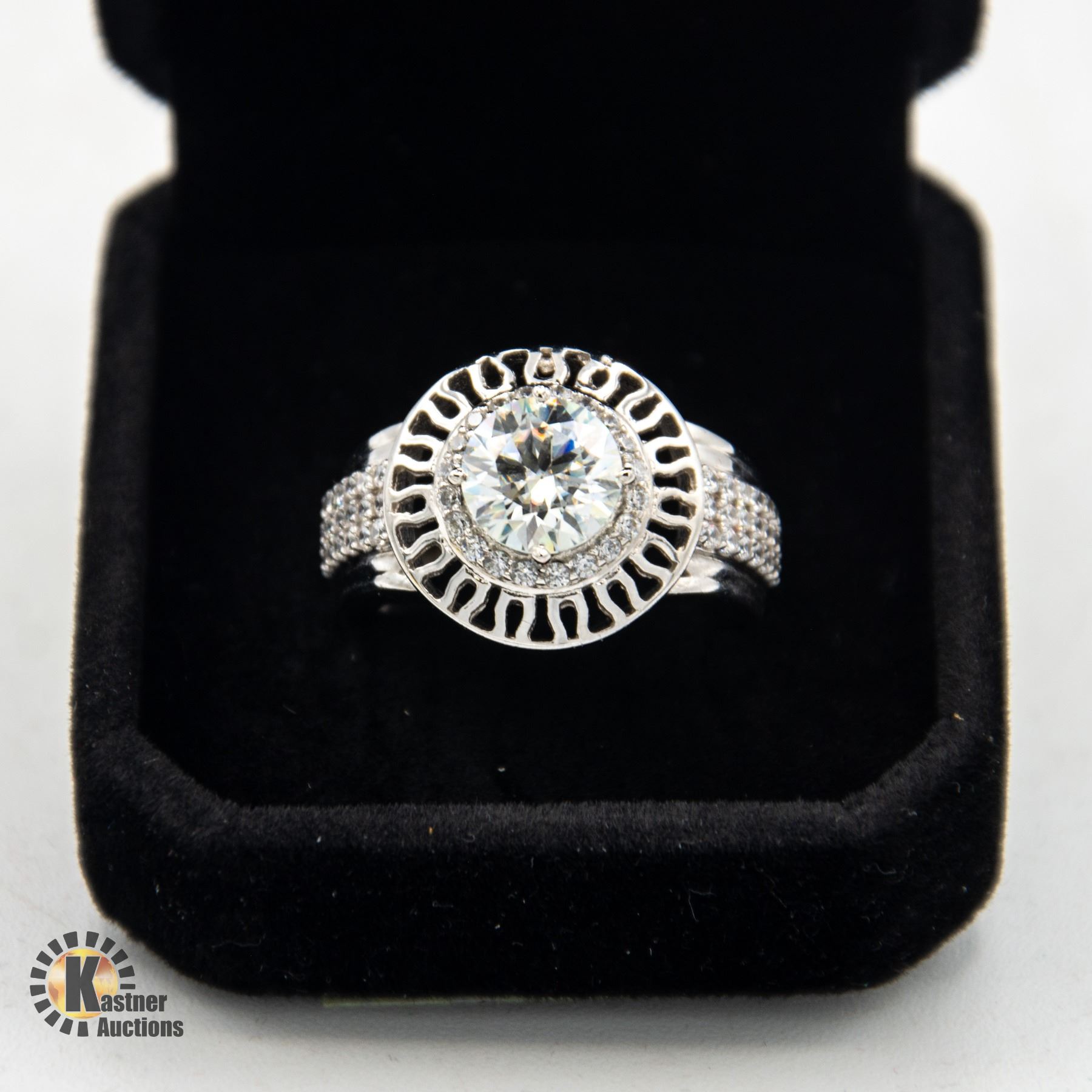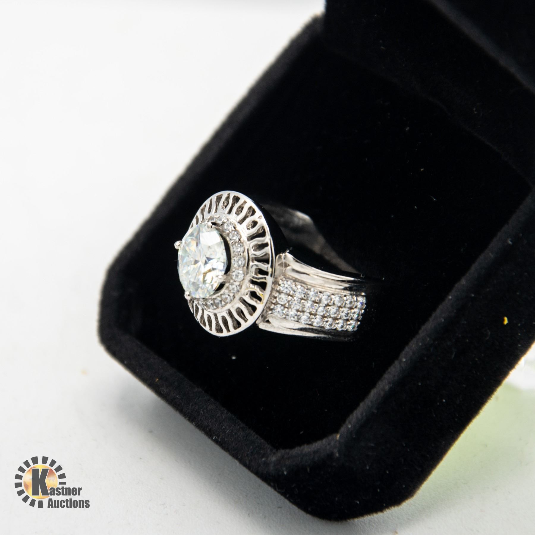 RING WITH 62 CUBIC ZIRCONIUM APPRAISED RING SIZE 8.5 APPRAISED VALUE $2,100.00 **ALL ITEMS MUST BE REMOVED BY 5PM SATURDAY, DECEMBER 16TH 2023. ALL REMAINING ITEMS WILL BE SUBJECT TO A $6.00 PER DAY STORAGE CHARGE. ANY ITEMS REMAINING AFTER TUESDAY, JANUARY 2ND 2023 WILL BE CONSIDERED FORFEITED. NO REFUNDS WILL BE ISSUED FOR FORFEITED ITEMS. TO SCHEDULE A PICK UP APPOINTMENT CLICK HERE