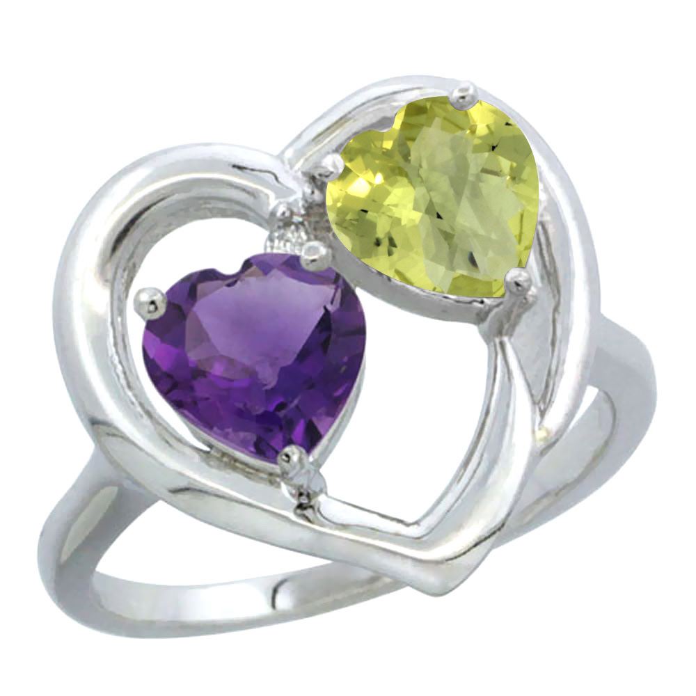 2.61 CTW Diamond, Amethyst & Lemon Quartz Ring 10K White Gold - REF-23M5A
