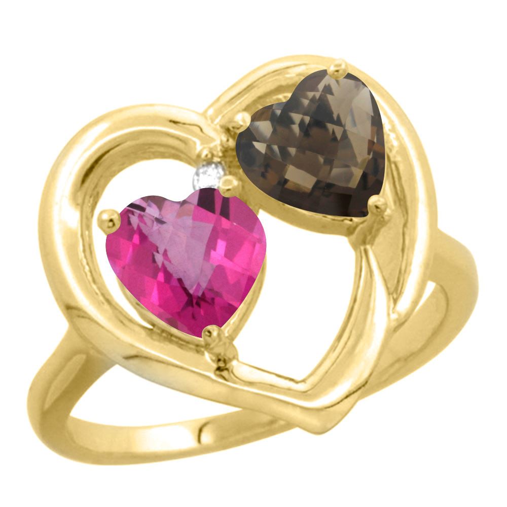 REF-23X7M - SKU: SC-CY90607163 ---- 2.61 CTW Diamond, Pink Topaz & Quartz Ring 10K Yellow Gold