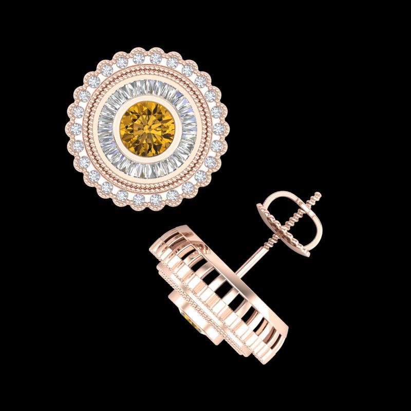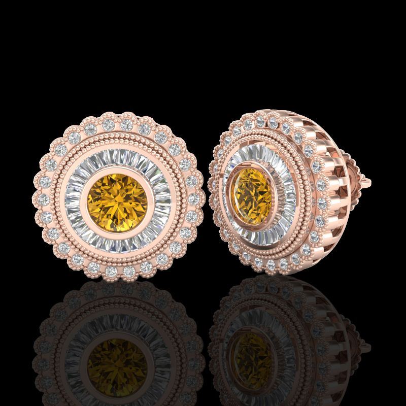 REF-300X2T -37911 ---- 2.61 CTW Intense Fancy Yellow Diamond Art Deco Stud Earrings 18K Rose Gold ---- Luxury Designer Brand Earring Appraised at $18,150 Certificate Number US37911 18k Rose gold, Earring Size is Larger, Earring measuring approx. Uniform, weighing in total approx. 9 grams. Made in the USA and is stamped 18k, Main stone 1.11 carat total weight containing 2 pieces of Intense Fancy Yellow color with SI quality Round shape cut Diamond , Stone #2 0.7 carat total weight containing 52 pieces of H-I color with VS/SI quality Round shape cut Diamond , Stone #3 0.8 carat total weight containing 60 pieces of G-H color with VS/SI quality Baguette shape cut Diamond