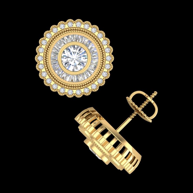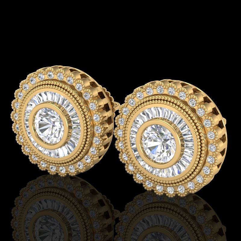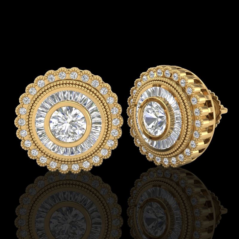 REF-381X8T -37084 ---- 2.61 CTW VS/SI Diamond Solitaire Art Deco Stud Earrings 18K Yellow Gold ---- Luxury Designer Brand Earring Appraised at $23,100 Certificate Number US37084 18k Yellow gold, Earring Size is Larger, Earring measuring approx. Uniform, weighing in total approx. 8 grams. Made in the USA and is stamped 18k, Main stone 1.11 carat total weight containing 2 pieces of H-J color with VS/SI quality Round shape cut Diamond , Stone #2 0.7 carat total weight containing 52 pieces of H-I color with VS/SI quality Round shape cut Diamond , Stone #3 0.8 carat total weight containing 60 pieces of G-H color with VS/SI quality Baguette shape cut Diamond