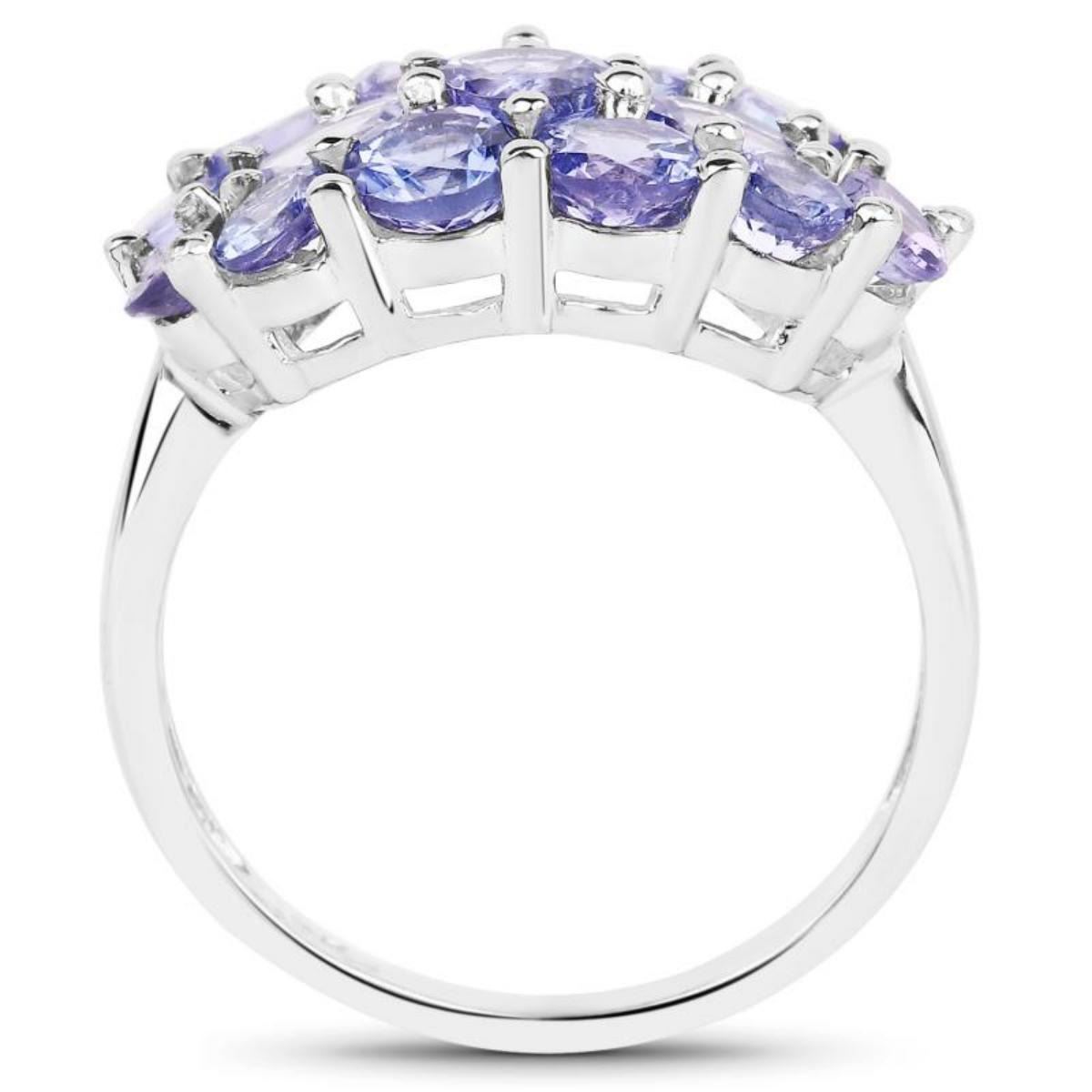 This is a 2.61 Carat Genuine Tanzanite .925 Sterling Silver Ring (size 8) measuring 0.42 Inches in length with a total gross weight of 3.72 (gm) | Gemstone Info: Tanzanite: Oval/5x4mm 2/0.66 ctw & Tanzanite: Round/4.00mm 5/1.15 ctw & Tanzanite: Round/3.00mm 8/0.80 ctw | Metal Info: .925 Sterling Silver weighing 3.198 (gm).
