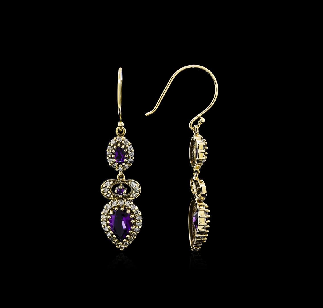 One pair of earrings featuring: 18KT yellow gold weighing 6.20 grams containing amethysts with a total weight of 2.61ct and diamonds with a total weight of 0.98ct.