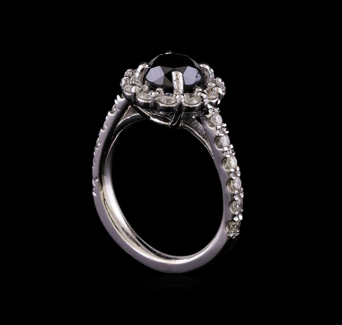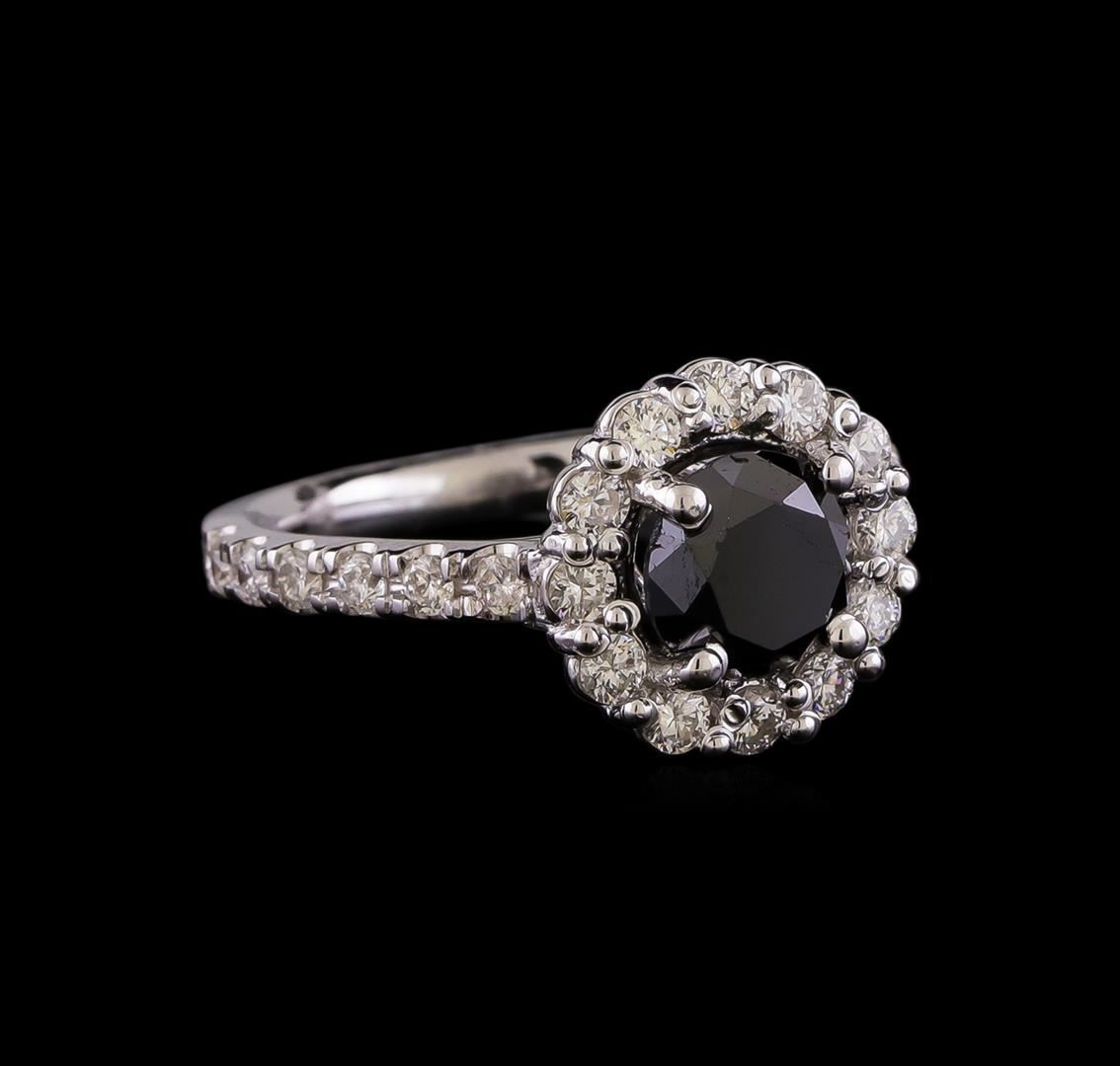 One ring : 14KT white gold weighing 5.00gm containing one black diamond center stone with a total weight of 1.84ct. and diamonds weighing 0.77ctw.