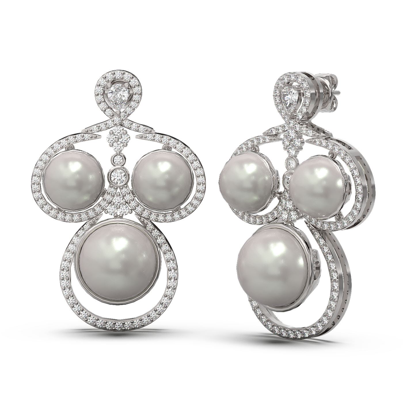 REF-298R4K - SKU: 55868 ---- 2.61 ctw Diamond & Pearl Earrings 18K White Gold