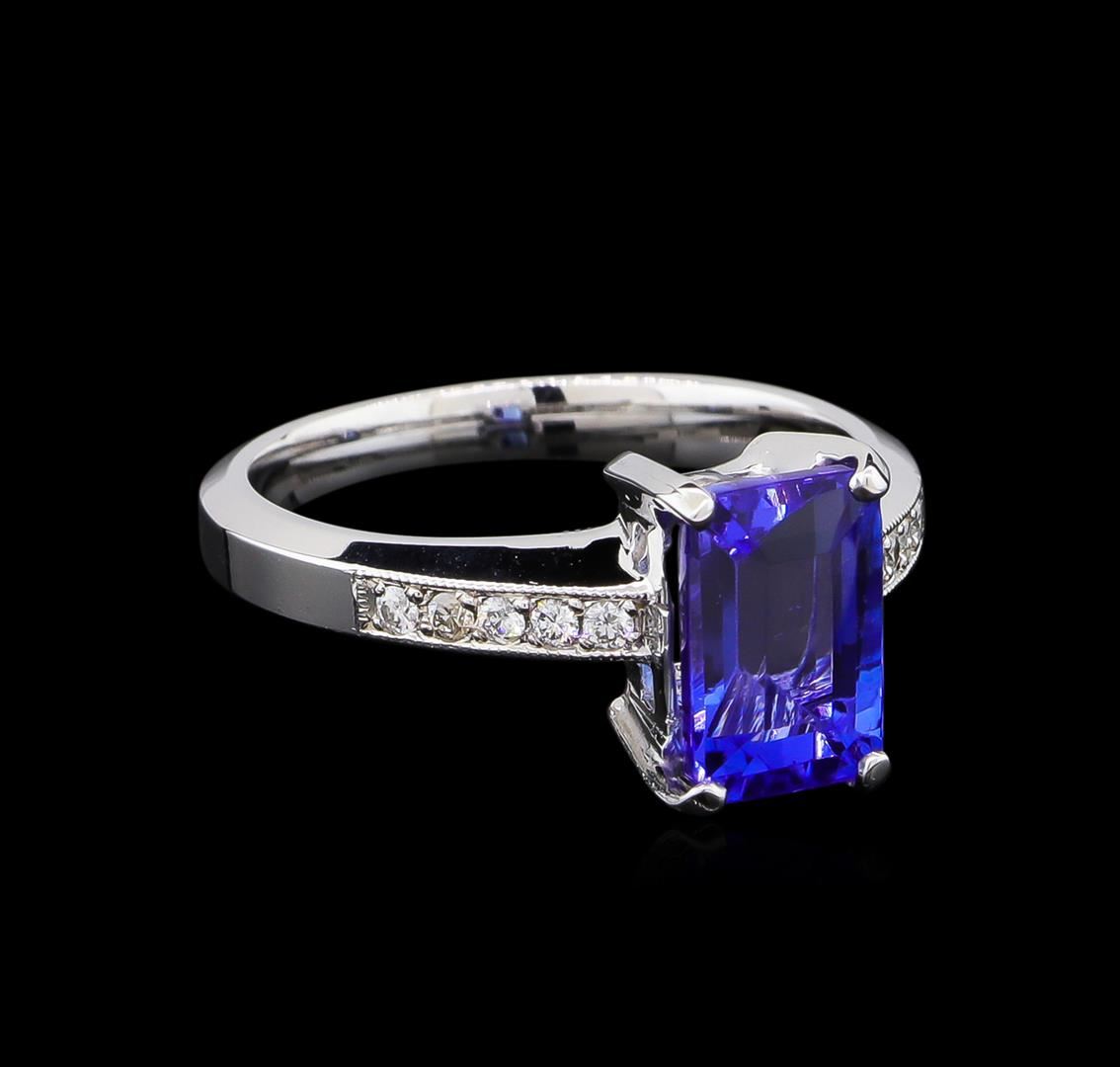 One ring featuring: 14KT white gold weighing 4.09 grams containing one tanzanite with a total weight of 2.61ct and side diamonds with a total weight of 0.15ct.
