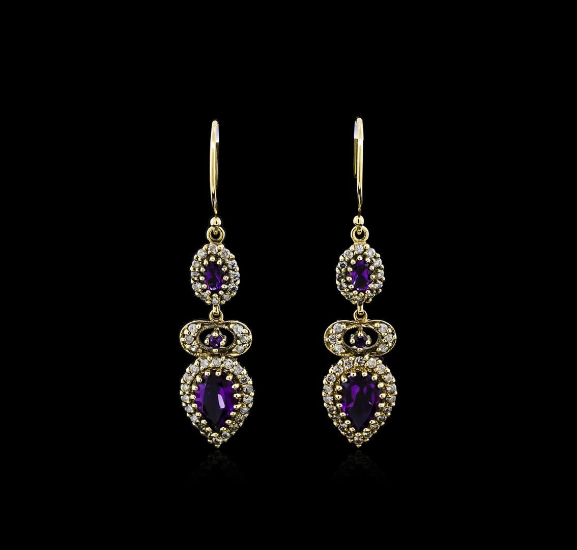One pair of earrings featuring: 18KT yellow gold weighing 6.20 grams containing amethysts with a total weight of 2.61ct and diamonds with a total weight of 0.98ct.