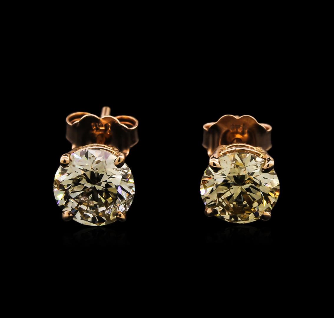 One pair of stud earrings featuring: 14KT rose gold weighing 1.00 gram containing two diamonds with a total weight of 2.61ct.