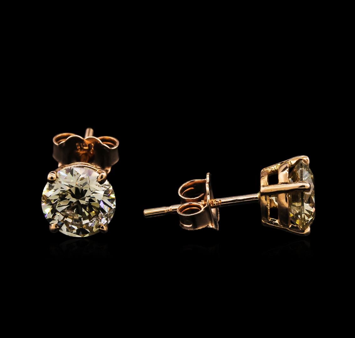 One pair of stud earrings featuring: 14KT rose gold weighing 1.00 gram containing two diamonds with a total weight of 2.61ct.