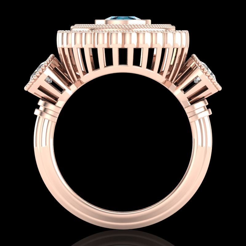 REF-290Y9K -37923 ---- 2.62 CTW Intense Blue Diamond Solitaire Art Deco 3 Stone Ring 18K Rose Gold ---- Luxury Designer Brand 3 stone ring Appraised at $19,200 Certificate Number US37923 18k Rose gold, 3 stone ring Size is 7, 3 stone ring measuring approx. Uniform, weighing in total approx. 11 grams. Made in the USA and is stamped 18k, Main stone 0.77 carat total weight containing 1 pieces of Intense Fancy Blue color with SI quality Round shape cut Diamond , Stone #2 0.94 carat total weight containing 28 pieces of H-I color with VS/SI quality Round shape cut Diamond , Stone #3 0.91 carat total weight containing 26 pieces of G-H color with VS/SI quality Baguette shape cut Diamond