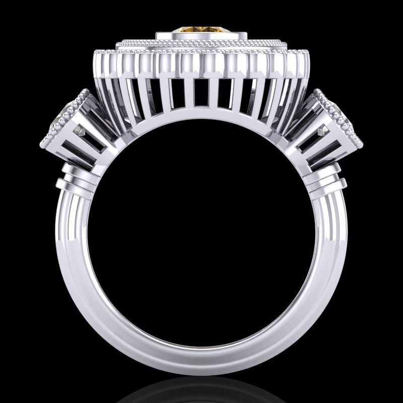 REF-290M9H -37924 ---- 2.62 CTW Intense Fancy Yellow Diamond Art Deco 3 Stone Ring 18K White Gold ---- Luxury Designer Brand 3 stone ring Appraised at $17,600 Certificate Number US37924 18k White gold, 3 stone ring Size is 7, 3 stone ring measuring approx. Uniform, weighing in total approx. 11 grams. Made in the USA and is stamped 18k, Main stone 0.77 carat total weight containing 1 pieces of Intense Fancy Yellow color with SI quality Round shape cut Diamond , Stone #2 0.94 carat total weight containing 28 pieces of H-I color with VS/SI quality Round shape cut Diamond , Stone #3 0.91 carat total weight containing 26 pieces of G-H color with VS/SI quality Baguette shape cut Diamond