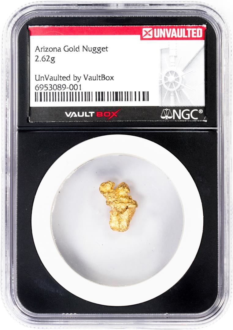 One 2.62 Gram Arizona Gold Nugget NGC Vaultbox Unvaulted. NGC Certified.