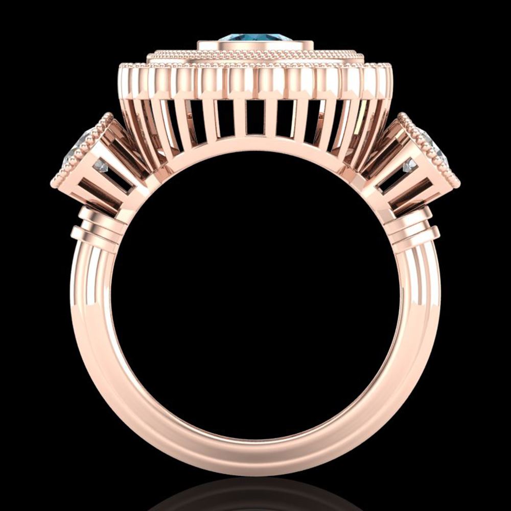 REF-290M9G - SKU: 37923 ---- 2.62 ctw Intense Blue Diamond Art Deco 3 Stone Ring 18k Rose Gold