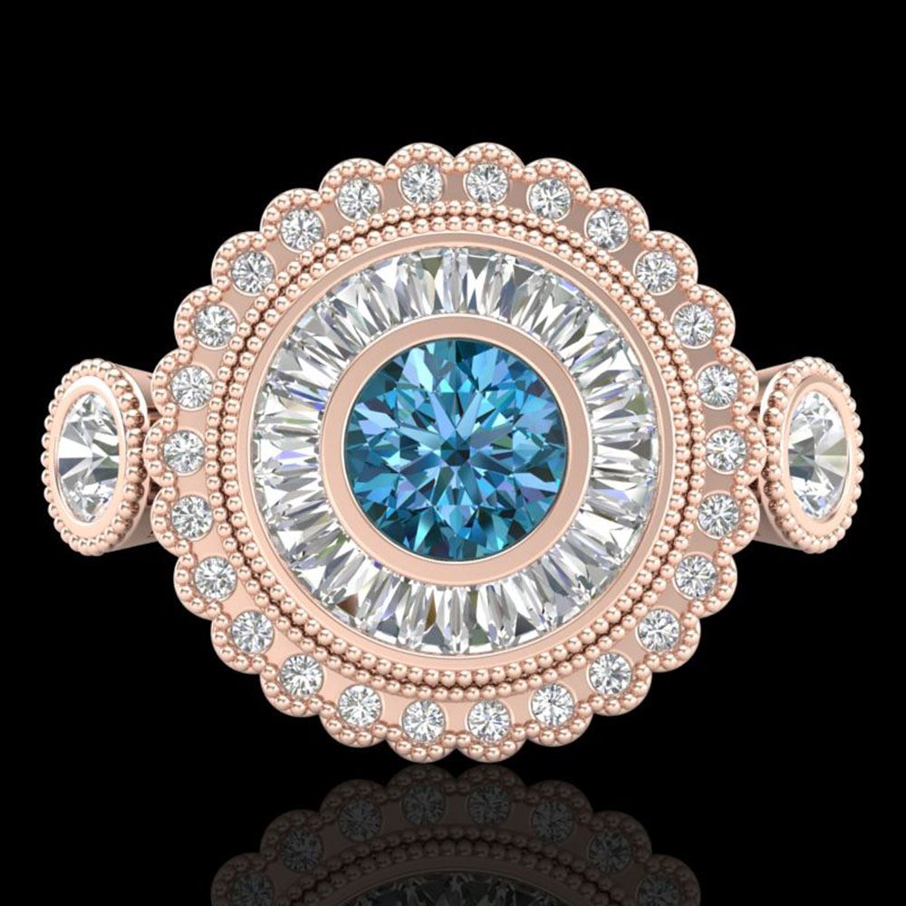 REF-290M9G - SKU: 37923 ---- 2.62 ctw Intense Blue Diamond Art Deco 3 Stone Ring 18k Rose Gold