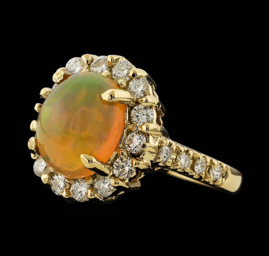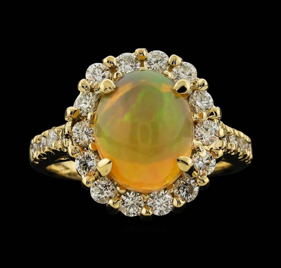 One ring : 14KT yellow gold weighing 6.41gm containing opal with a total weight of 2.62ct and diamonds weighing 0.90ctw.