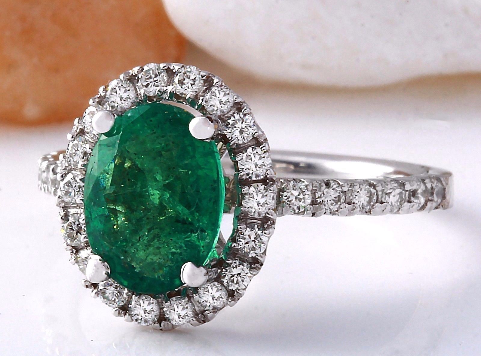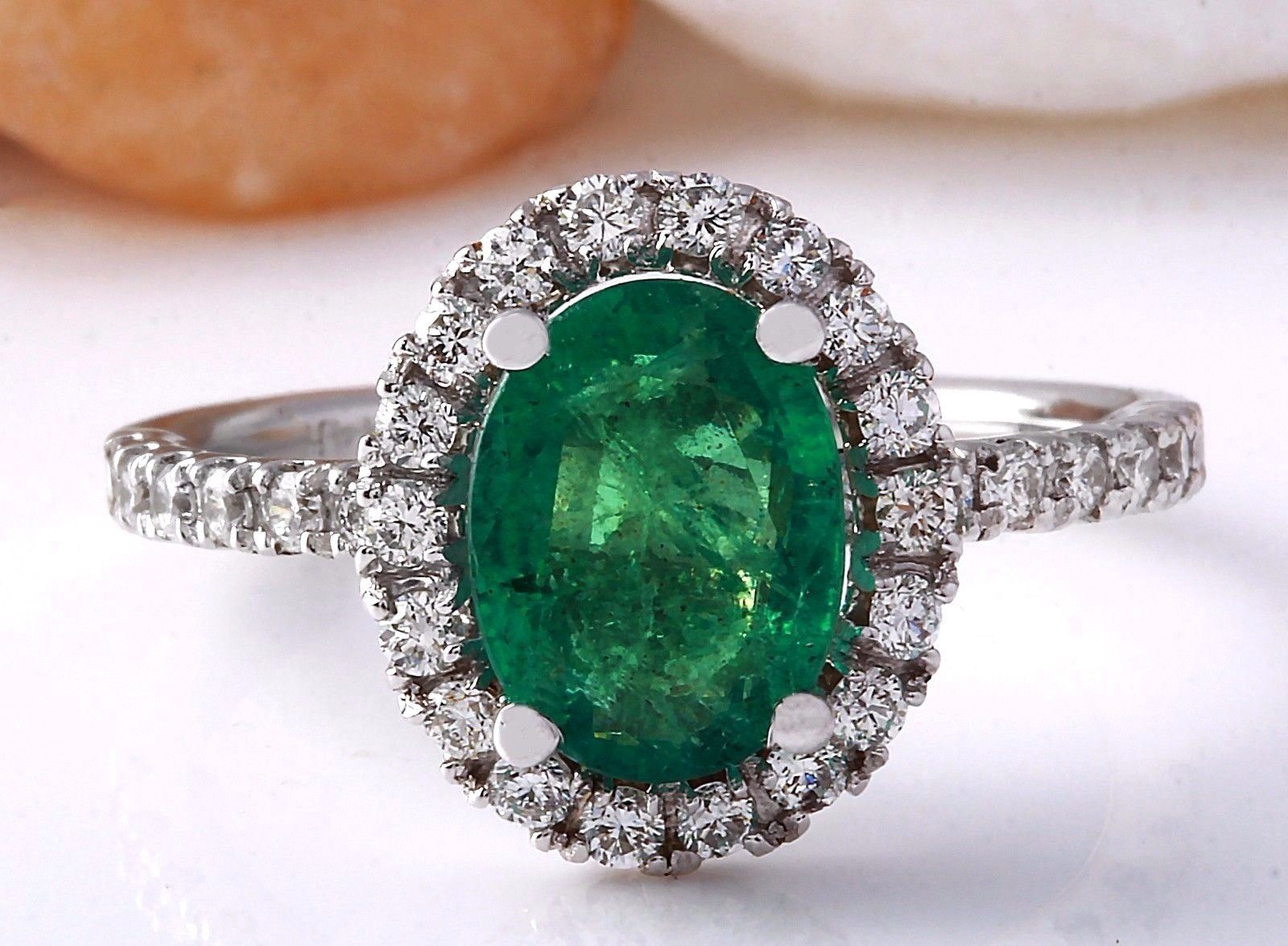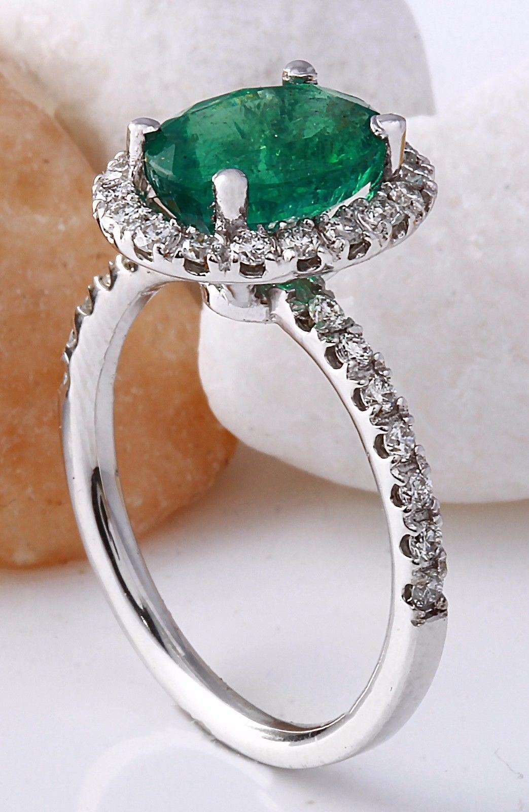 2.63 CTW Natural Emerald 18K Solid White Gold Diamond Ring