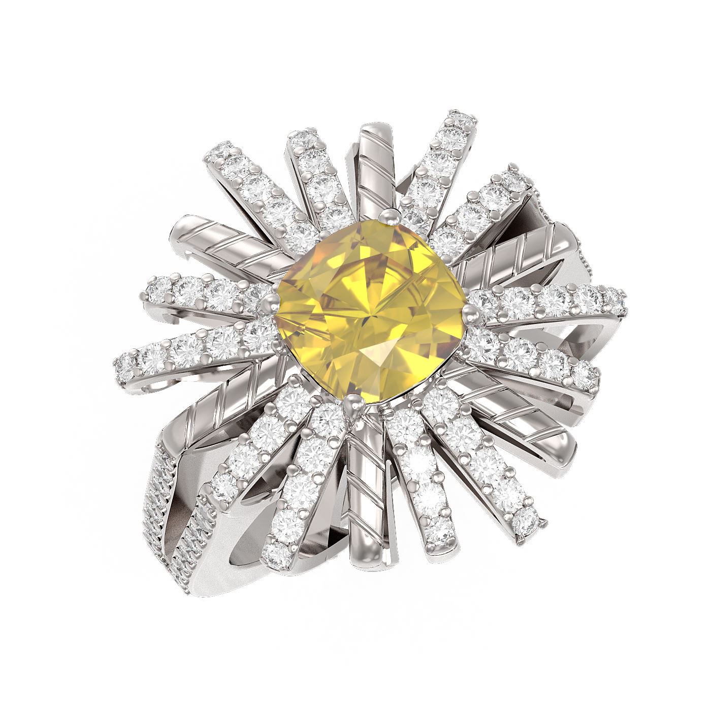 SKU: 51961 ---- 2.63 ctw Canary Citrine & Diamond Ring 18K White Gold