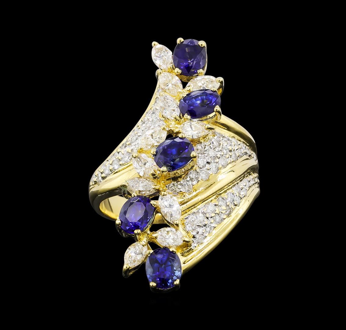One ring featuring: 18KT Yellow Gold containing Sapphire with a total weight of 2.63ct and Diamonds with a total weight of 1.59ct. Total Weight of Ring: 10.2 grams.