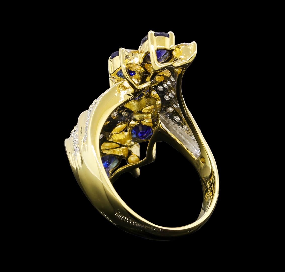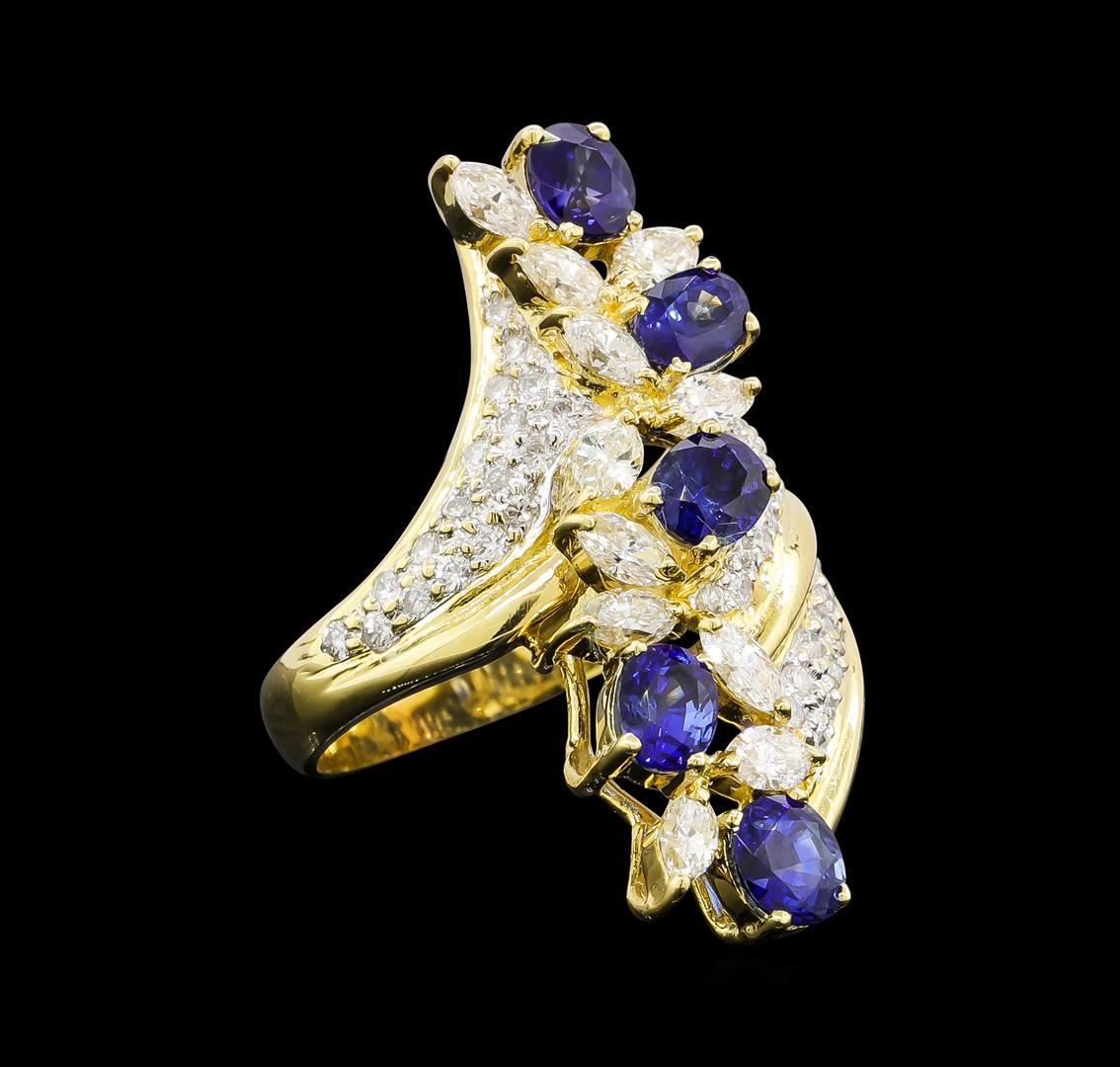 One ring featuring: 18KT Yellow Gold containing Sapphire with a total weight of 2.63ct and Diamonds with a total weight of 1.59ct. Total Weight of Ring: 10.2 grams.