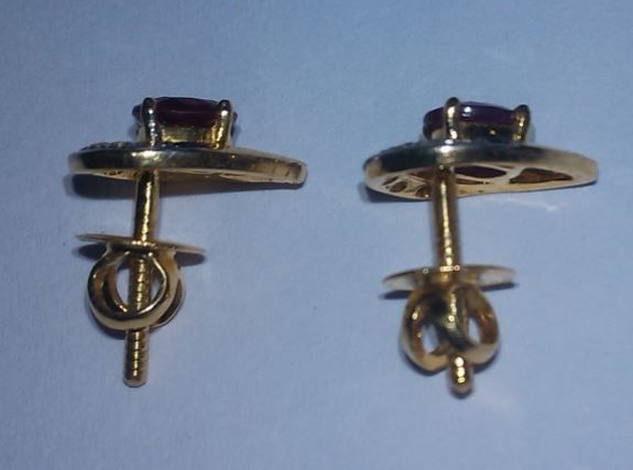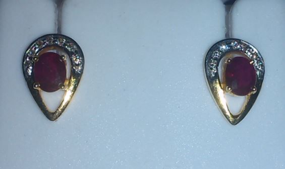 2.63g Earring Made of 14Kt Gold ,0.12 Ct Diamond, 0.91 Ct Ruby