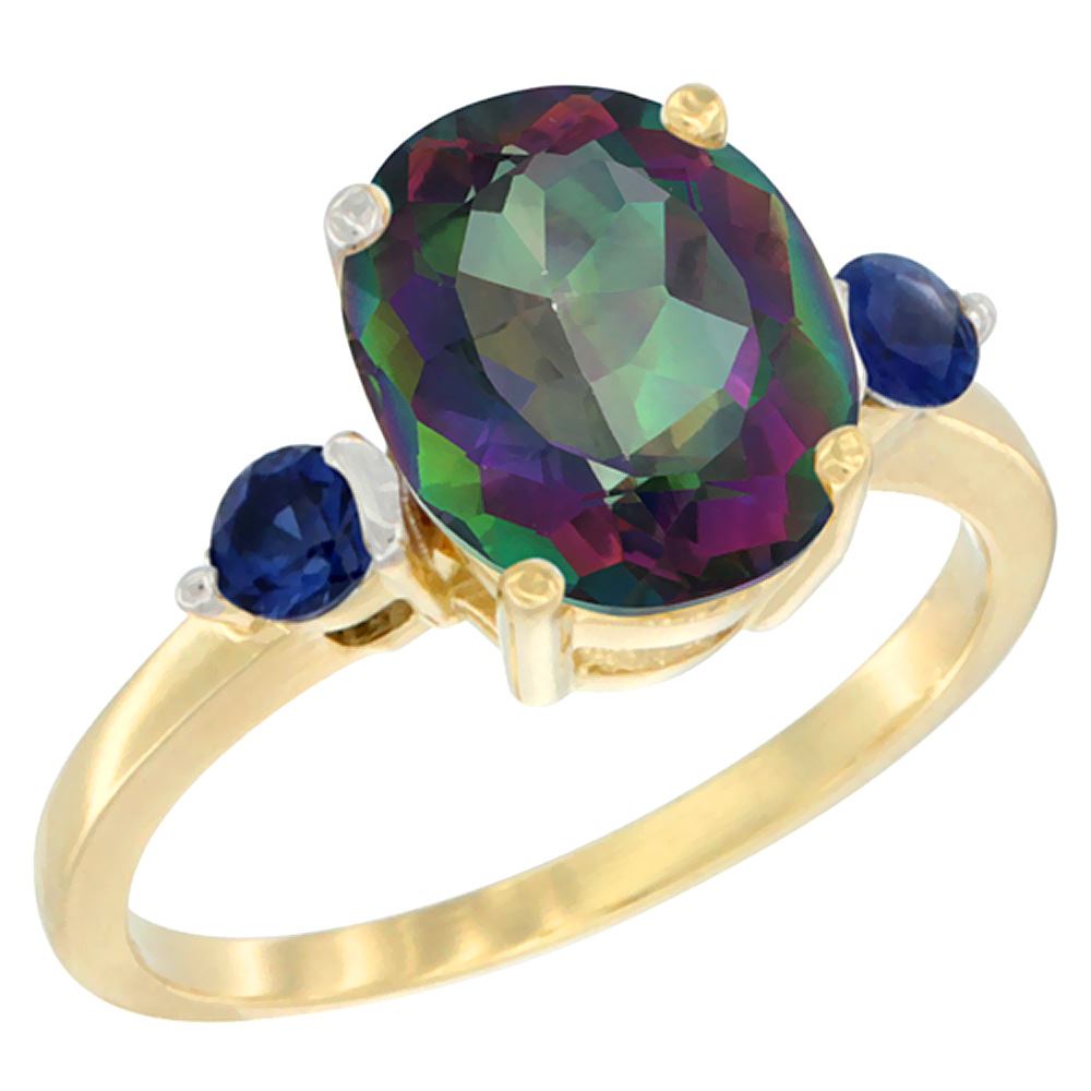 REF-32V3R - SKU: SC-CY40830218 ---- 2.64 CTW Mystic Topaz & Blue Sapphire Ring 14K Yellow Gold