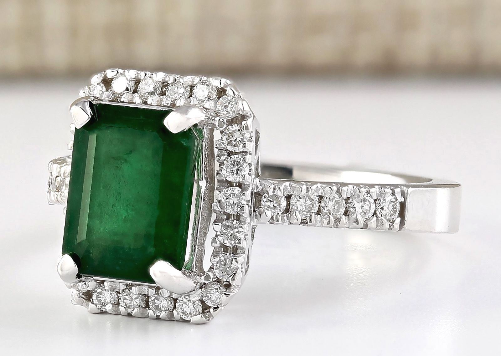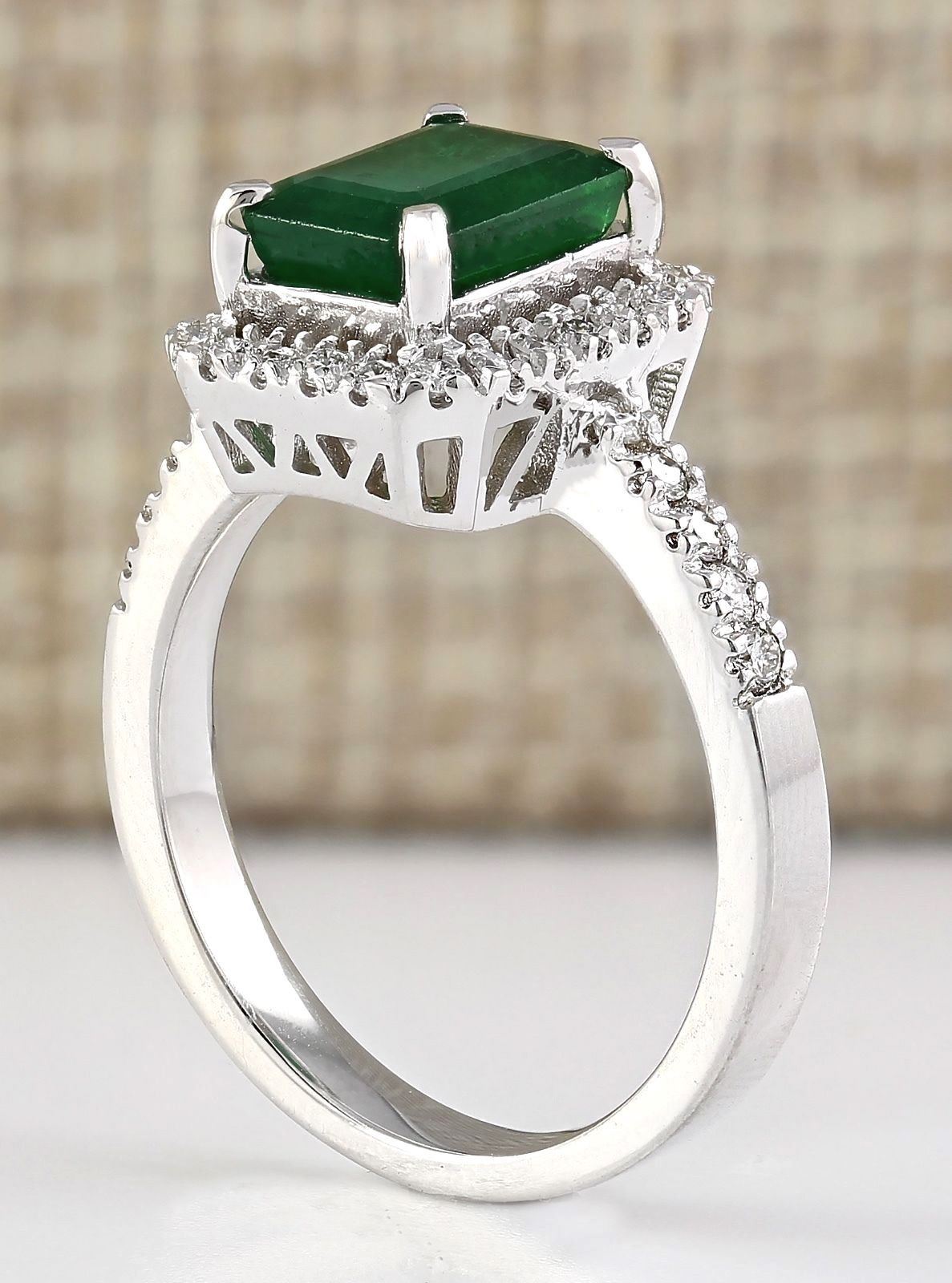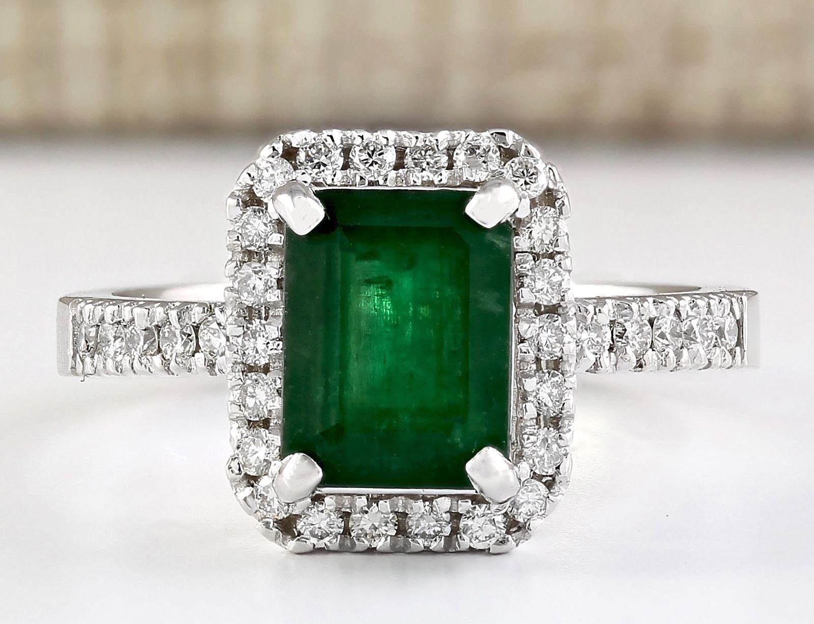 2.64 CTW Natural Emerald And Diamond Ring In 14k White Gold