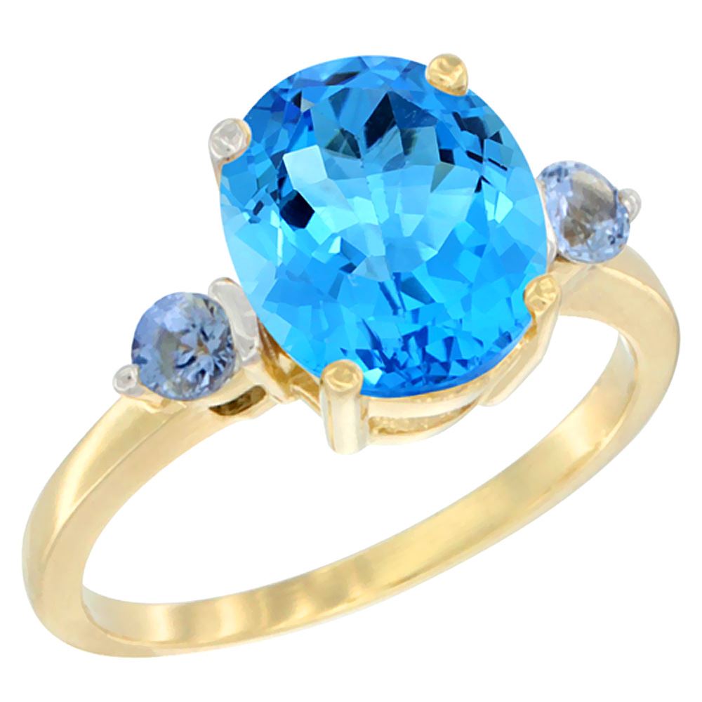 REF-24M5A - SKU: SC-CY90432218 ---- 2.64 CTW Swiss Blue Topaz & Blue Sapphire Ring 10K Yellow Gold