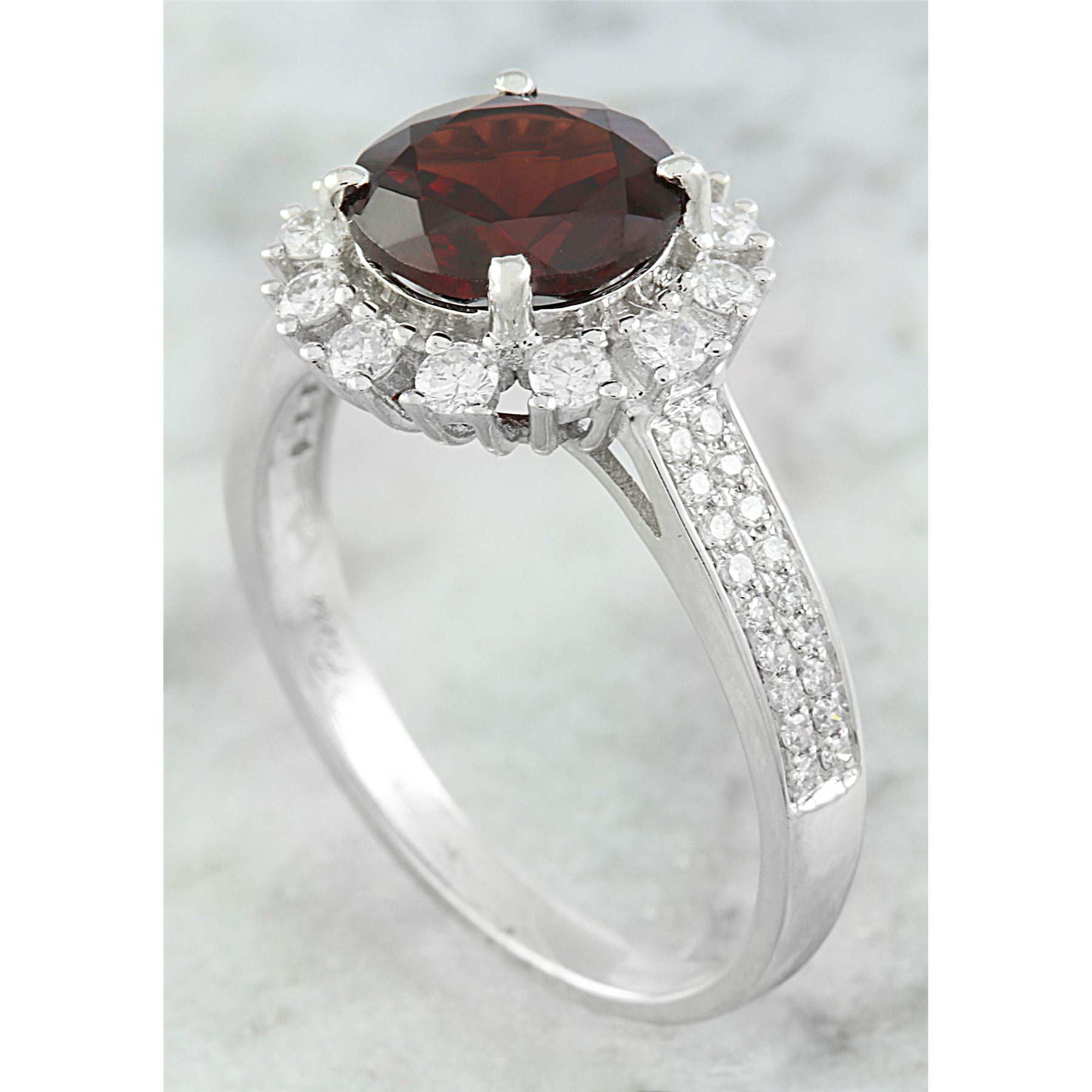2.65 CTW Garnet 14K White Diamond Ring