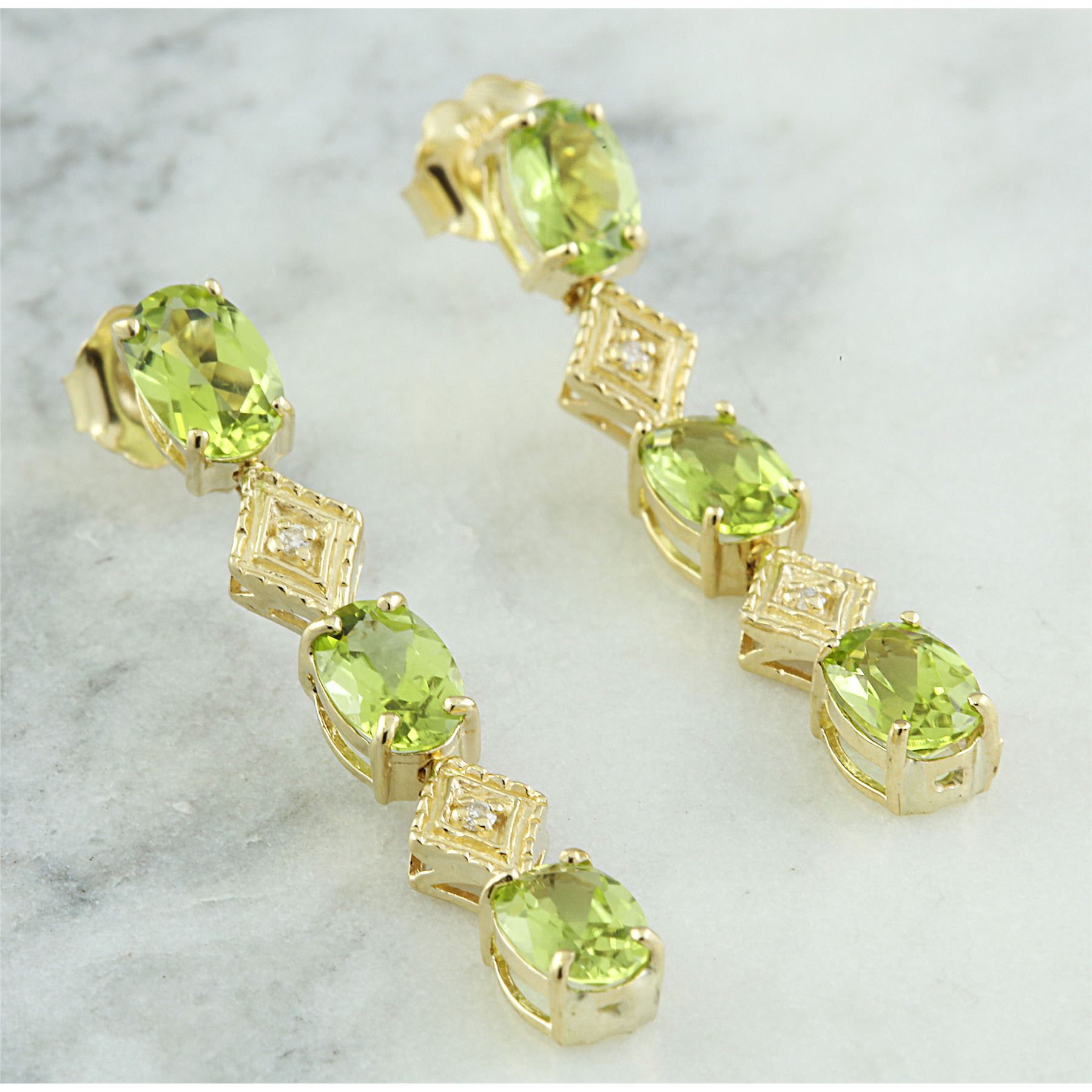 2.65 CTW Peridot 14K Yellow Gold Diamond Earrings